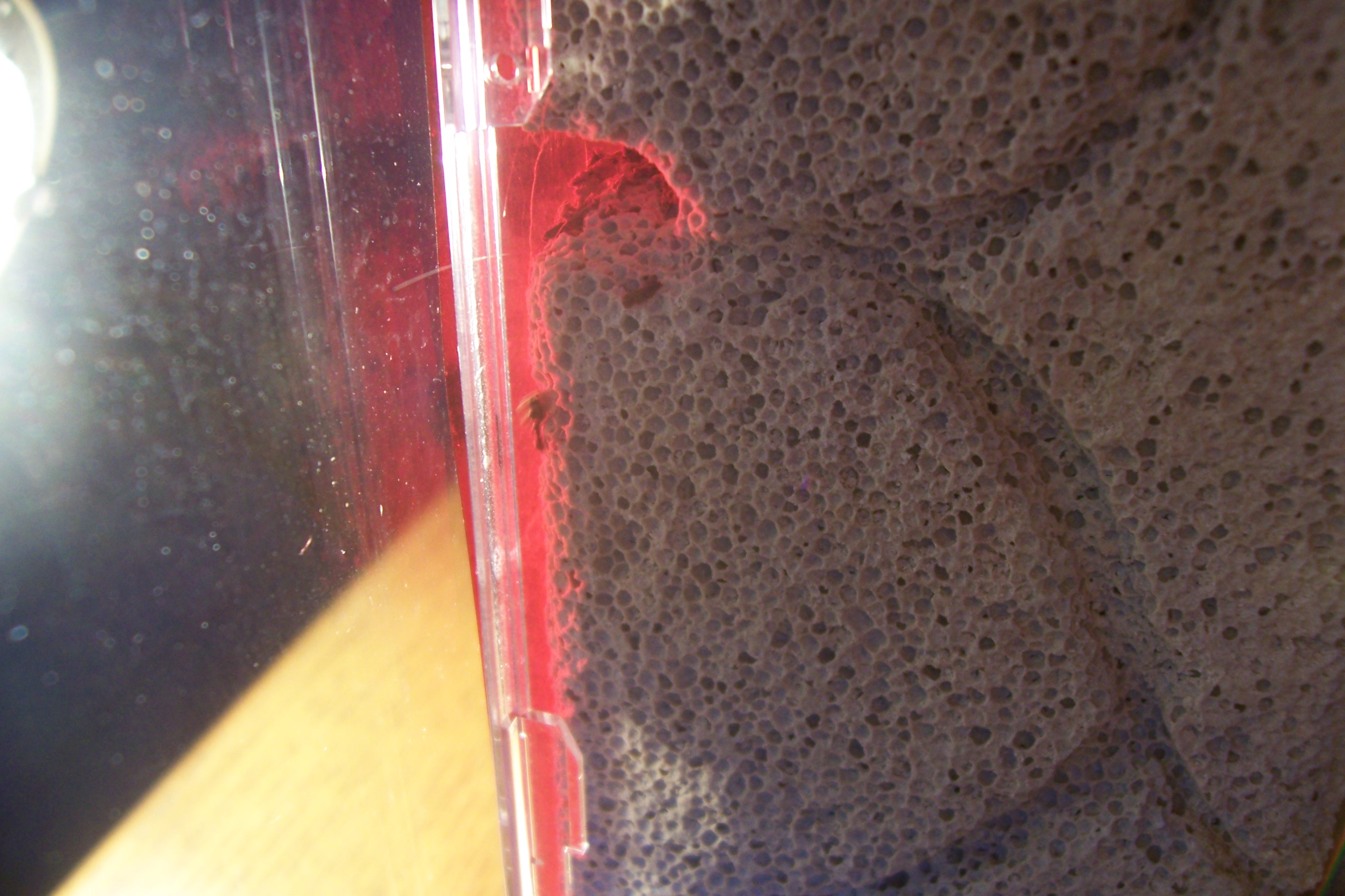 Um den Umzug zu beschleunigen und ggf. das Nest attraktiver zu machen, schalte ich eine Schreibtischlampe für ca. 2 Stunden pro Tag an. Ich habe eigentlich nicht damit gerechnet, dass es einen sofortigen Umzug aus dem RG in den YTong geben wird, zumal das Reagenzglas ja noch genug Wasser für die nächsten Wochen übrig hat.