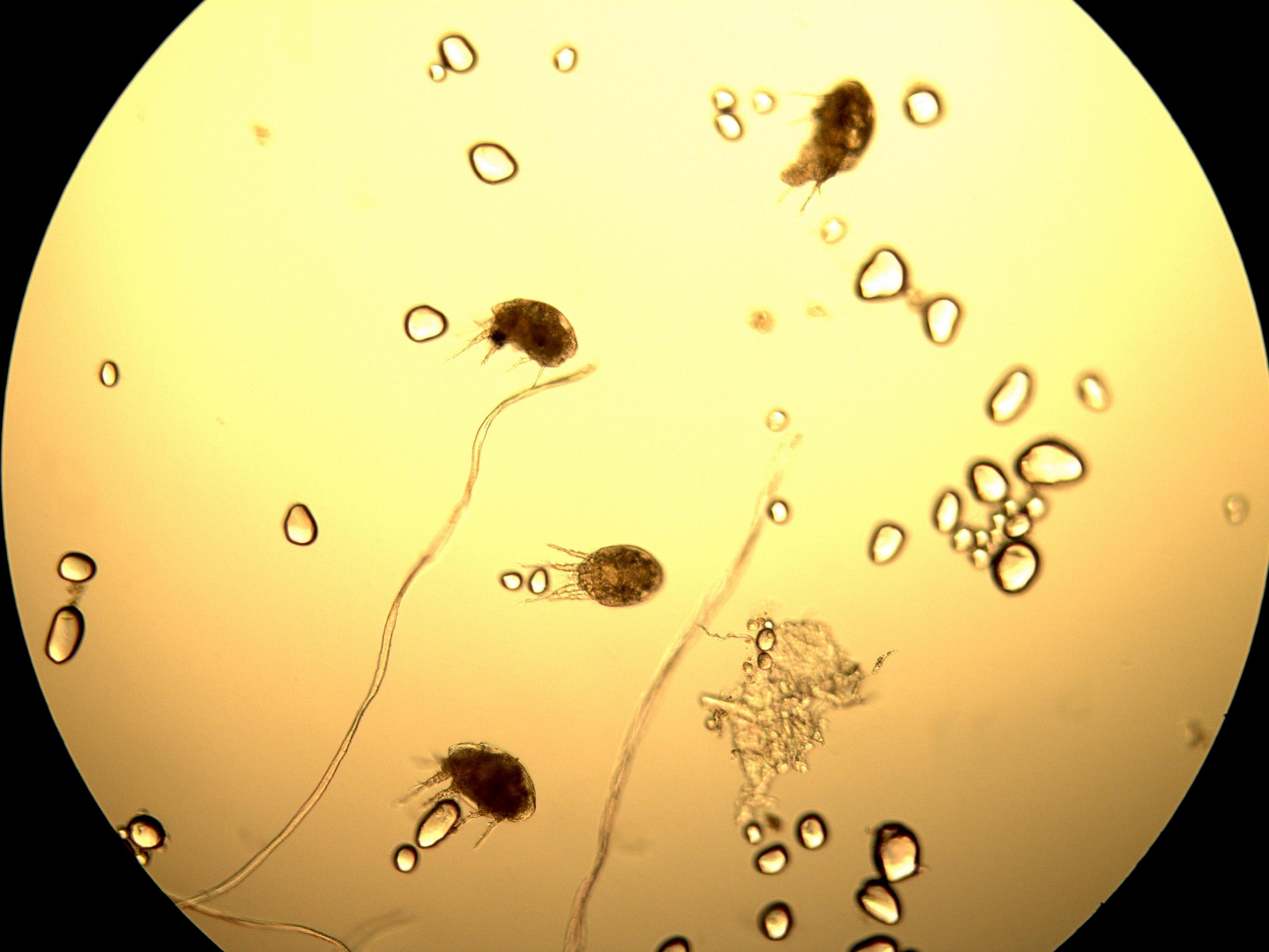 Die alkoholische Lösung wird auf Reaktionsgefäße verteilt. Anschließende Zentrifugation. Entnahme von 20μl, leichtes ausstreichen auf eine größere Fläche und mikroskopieren des Tropfens.