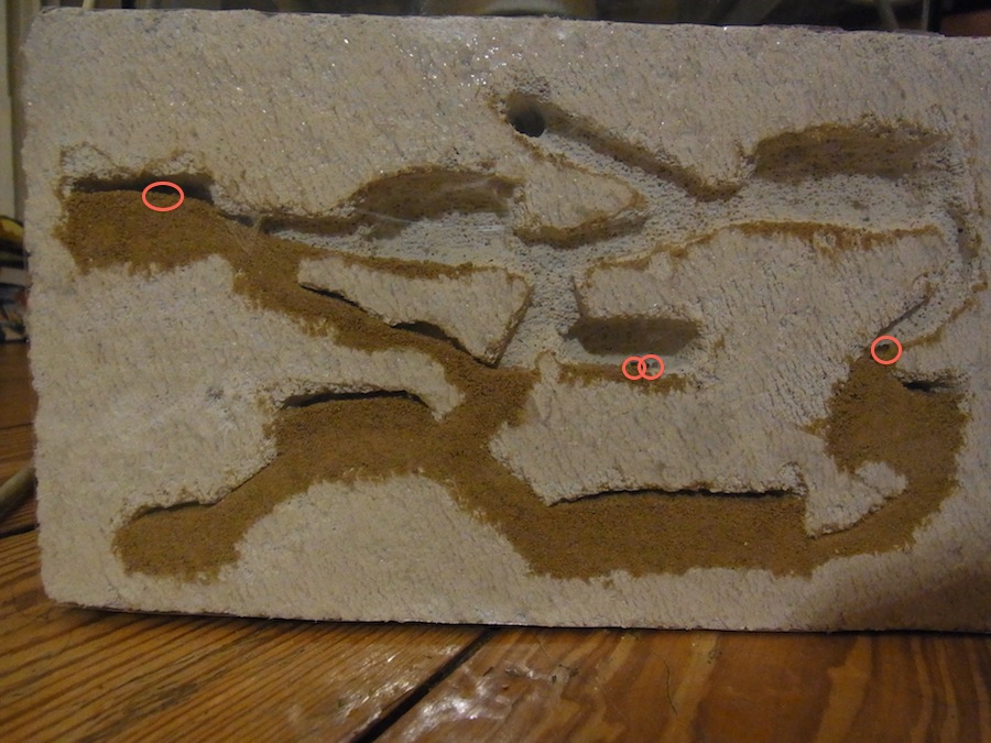 Auch wenn ich wusste dass ich bei einer Koloniestärke von ~60 Tieren mit nem Ytong Nest früh dran bin, habe ich eines gebastelt, und an die Arena mit Silicon angebracht. Der Ytong ist handelsüblicher aus dem Baumarkt, auf der Front klebt eine Overhead Projektor Folie.