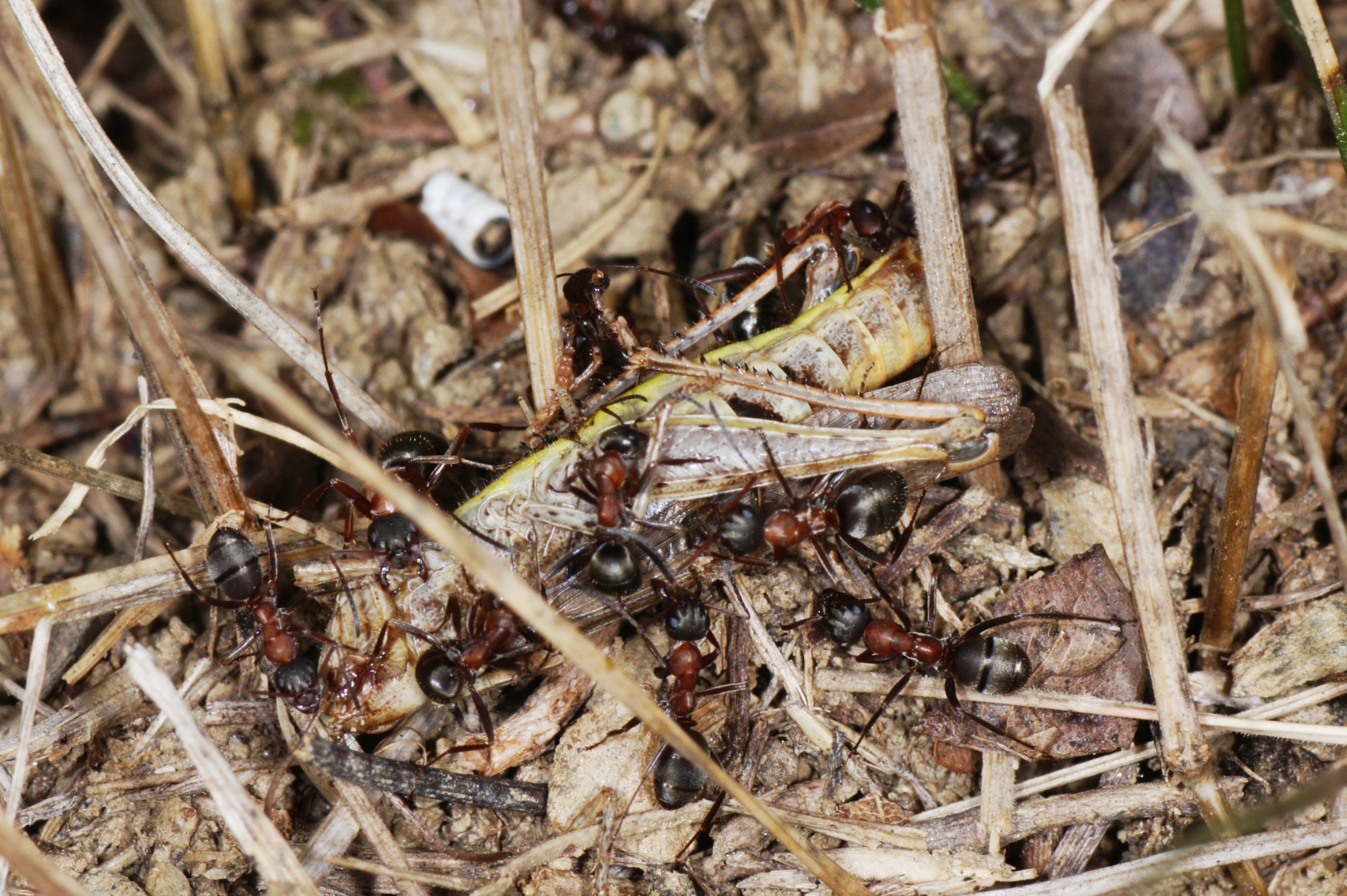Aber heute: das waren nicht viel weniger als 1000 Amazonen, die zweimal hintereinander ein großes Nest v. F. fusca überfallen u. jeweils reichlich Beute gemacht haben. Die rasch vorrückende, dichte Kolonne war zwischen 5 m und 7 m lang. Es gab, soweit ich erkennen konnte, keine Toten auf beiden Seiten!