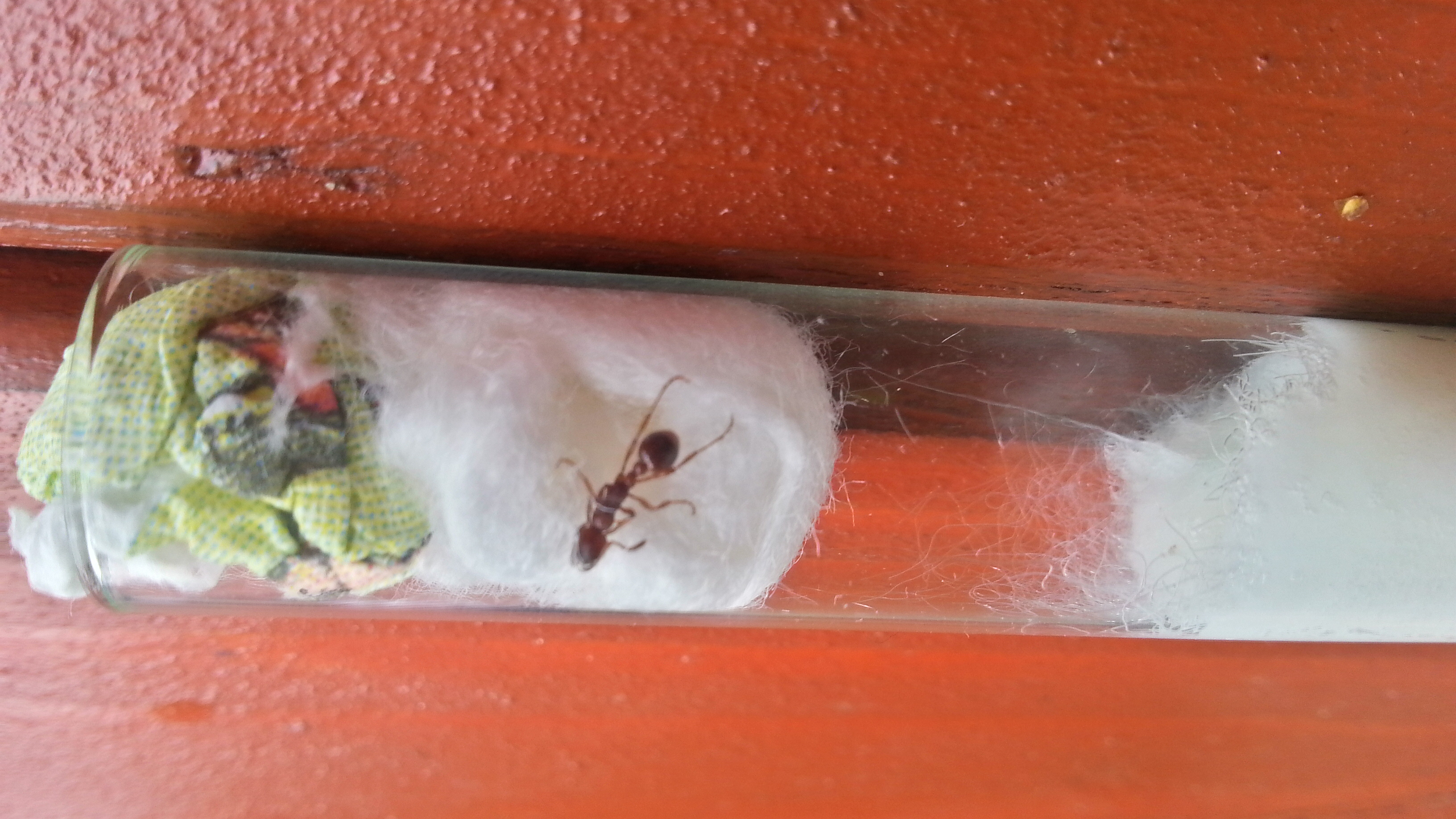 Hallo Leute, Ich habe in Polen in den Bergen ( ca.690 Metern höhe) eine rote Gyne mit ca. 1cm länge unter einem kleinen Stein in einer Kammer ohne Brut oder Mitbewohner. Ich hab immer ein RG mit Wassertank dabei und ich nahm sie mit. Sie verbeißt sich ständig in die Watte die das RG verschließt. Ich bin dabei ihr ein zuhause aus dem RG und einer Box zu bauen. Ich werde sie füttern da ich annehme das sie semiclaustral Gründet. Wisst ihr welche Art es sein könnte? Ich glaube Myrmica rubra. Und ein paar Meter von ihr weg liefen 2 halb so große rote ameisen ummher, körper bau ähnlich. eine Manica rubida Arbeiterinn kann es eig nicht sein.
