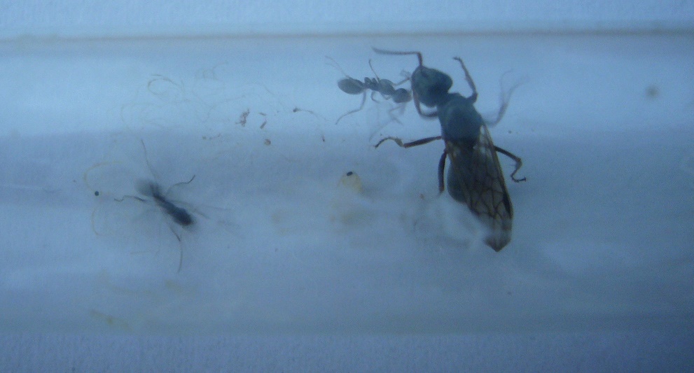 Hallo liebe Ameisenliebhaber, ich habe vor einiger Zeit eine Lasius-Königin gefangen. Allerdings hatte sie Flügel und war auch nicht so ruhig wie die anderen ohne Flügel. Doch anscheinend legte sie doch drei Eier, denn nach einiger Zeit schaute ich in das Reagenzglas und bemerkte, dass dort drei Nacktpuppen lagen. Ich dachte mir, dass das Mänchen sein werden, welche sie dann zur Befruchtung nutzt (ich weiß nicht ob es so etwas in der Ameisenwelt gibt), das würde auch die geringe Anzahl an Nackpuppen erklären... anders als bei den anderen Lasius (ob es L. niger sind weiß ich nicht, denke aber schon) schlüpften diese allerdings sofort und entwickelten sich nicht noch erst zur Puppe . Diesen Vorgang durfte ich sogar miterleben. Jetzt sind schon zwei geschlüpft und die dritte ist schon kurz davor und mitlerweile kann ich die Ameisen eindeutig als Arbeiter--->innen<--- identifiziert, das sind defintitiv keine Männchen. Ich war aber die ganze Zeit im Glauben, das befruchtete Königinnen ihre Flügel immer abwerfen, doch bei meiner Königin sind diese klar, solide und deutlich, fest am Leib verankert... hat jemand eine Antwort?