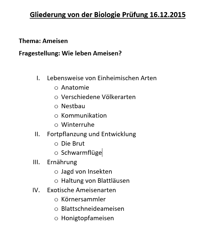 Das Thema "Ameisen", dürft ihr so verwenden? Bei uns musste man immer eine Fragestellung als Thema haben und darauf dann näher eingehen und am Ende diese Frage beantworten.
