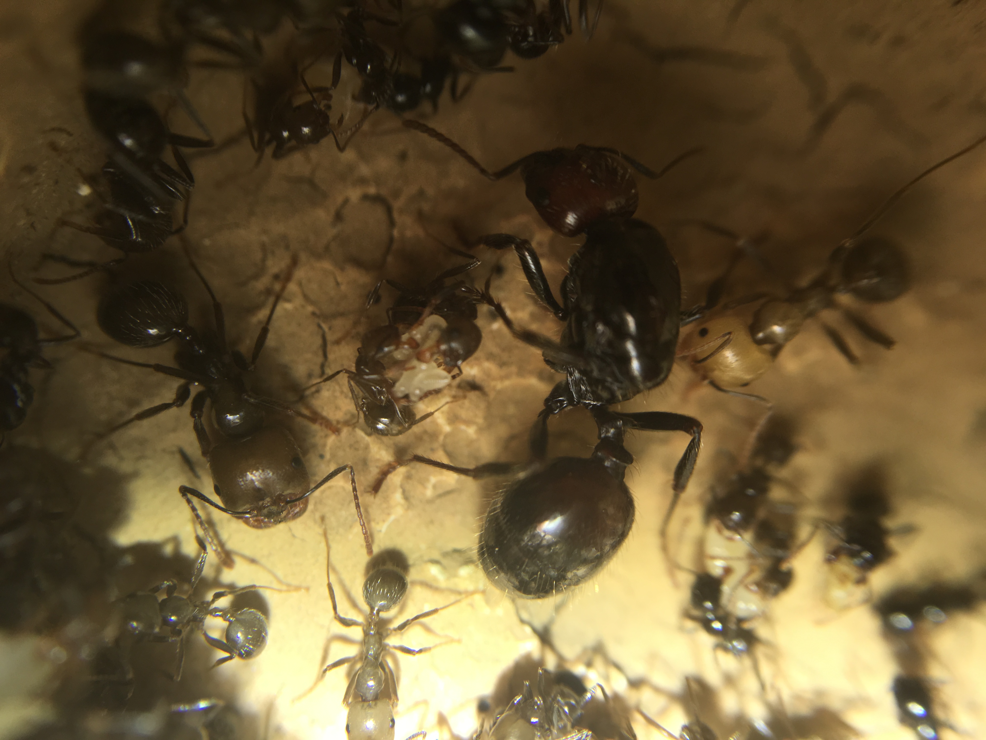 nachdem in den letzten Tagen die ersten Majore meiner ca. 60 Arbeiterinnen-Kolonie geschlüpft sind und ich die schon echt faszinierend finde, wollte ich euch mal ein kleines Bildchen von der aktuellen Nacktpuppe zeigen, da ich den Kopf echt riesig finde. Er ist deutlich größer als die aktuellen Majore und fast größer als der