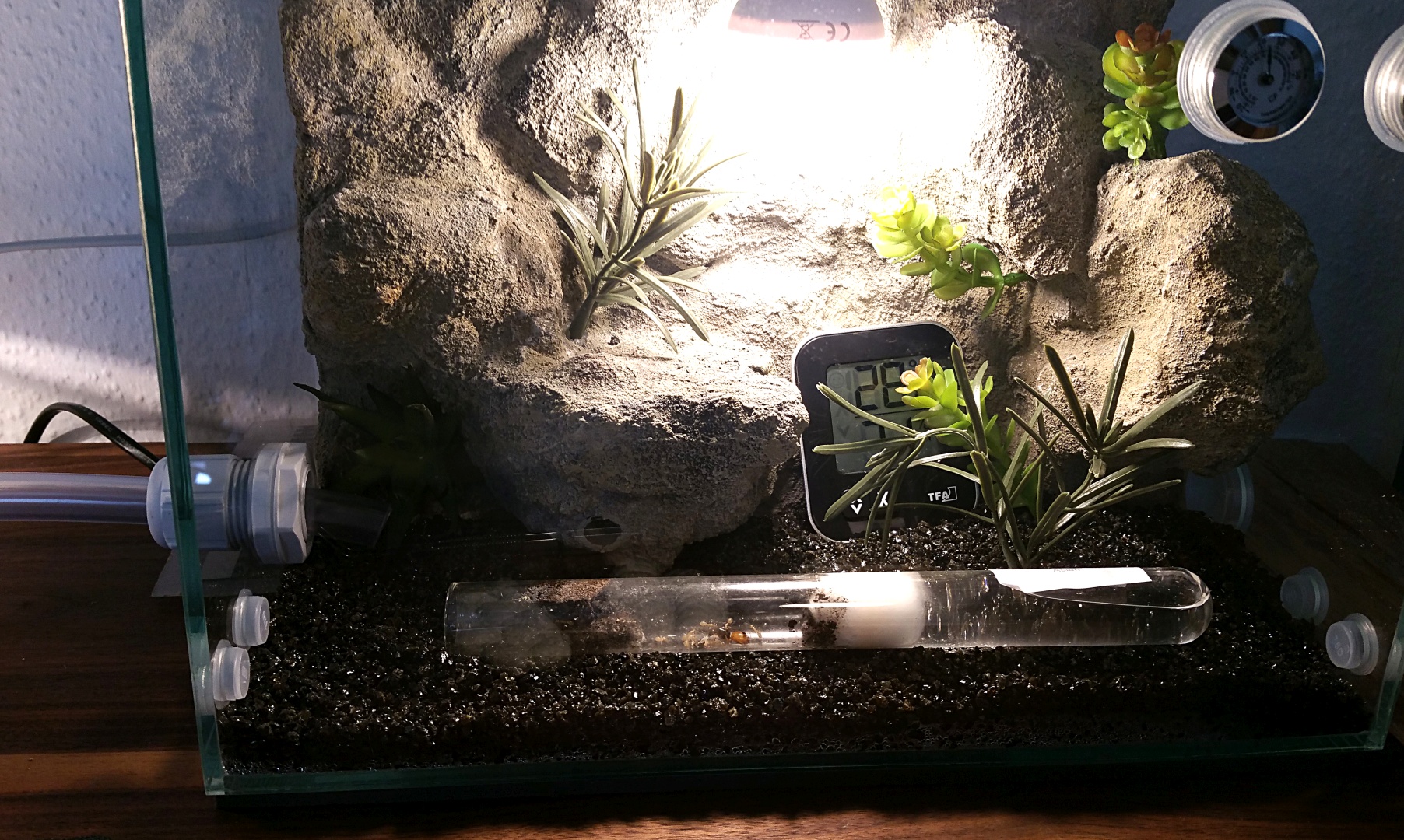 Warum dies geschehen ist? Es ist mir ein RĂ€tsel. Die benötigte Feuchtigkeit war vorhanden, auch eine TrĂ€nke bzw. ein weiteres Reagenzglas stand zur VerfĂŒgung.