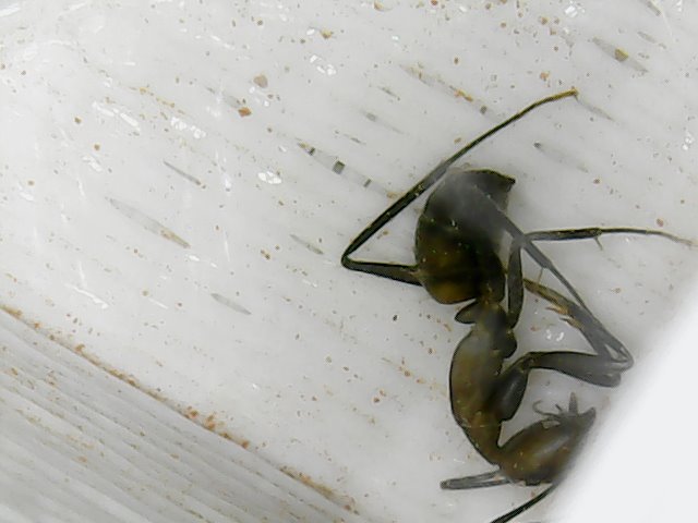 Im Nest habe ich 3 Tote gefunden, wobei ich zugeben muss, dass ich den ungenutzten Teil des Nestes, in dem ich 2 der Toten fand, mindestens 2 Wochen lang nicht genauer angeschaut habe und so eventuell Tote, die teils im Seramis etwas eingegraben waren, ĂŒbersehen habe. Die 3. Tote war zuerst im Gewimmel, bis sie zur BewĂ€sserungsstelle getragen wurde, diese konnte ich, aufgrund einer beschlagenen Scheibe nicht fotografieren, auf dieser konnte ich jedoch keine Milben finden.