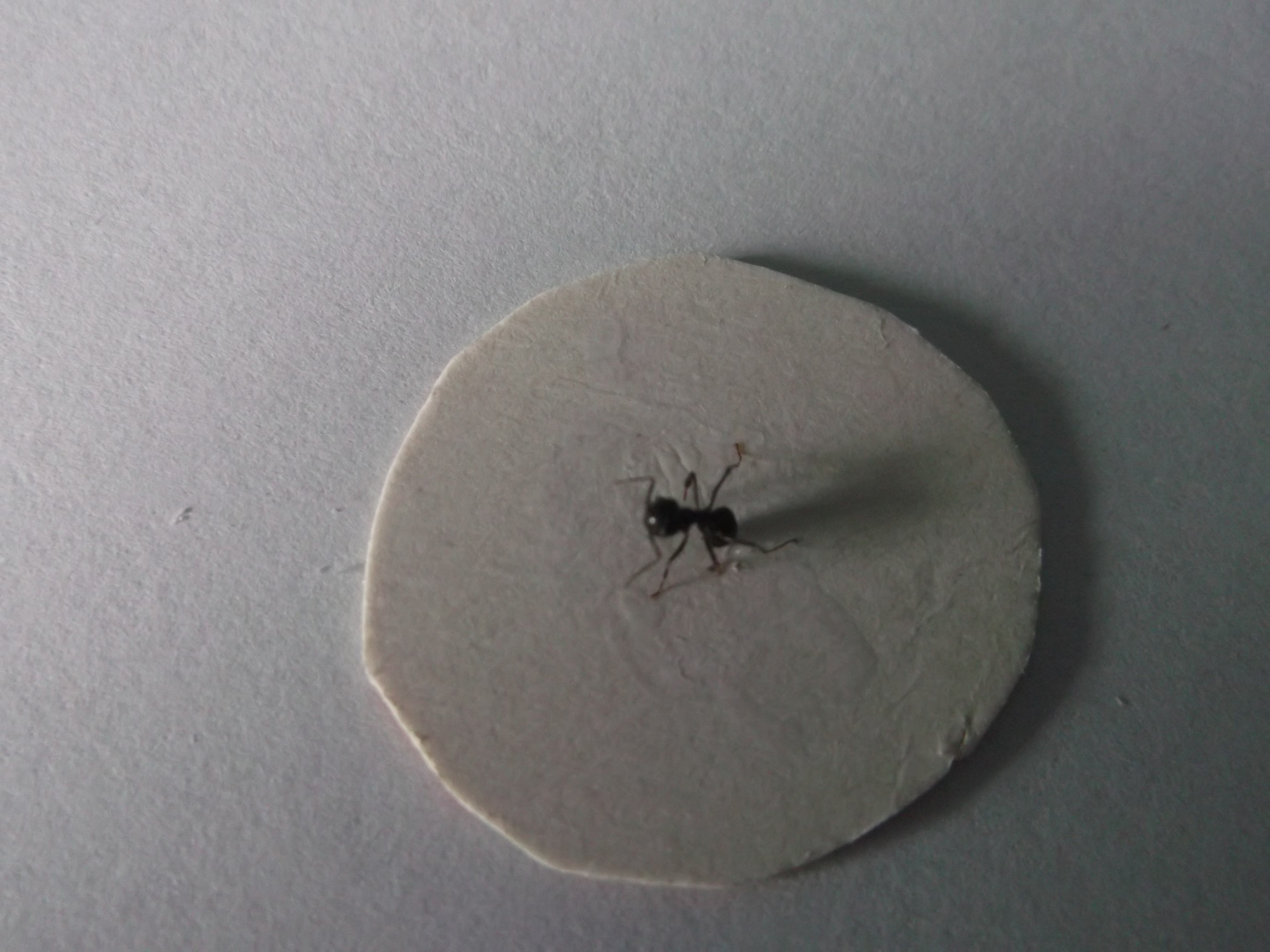 , aus der Not heraus mit Bastelkleber, es ist immer die Rede von Kleber, der wasserlöslich ist, damit man das Präparat jederzeit lösen kann, aber ich hatte so einen Kleber nicht da, noch glaube ich, dass ich die Ameise nochmal lösen muss. Ich denke solange er auf der Oberfläche hält und durchsichtig ist/wird, funktioniert jeder Kleber.