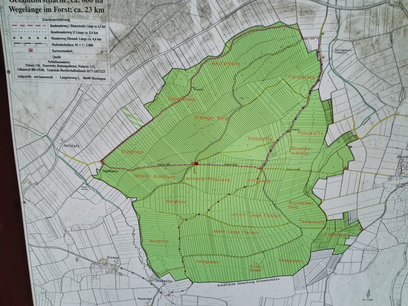 Hier eine Fotografie der Wanderkarte zu dem Waldstück: