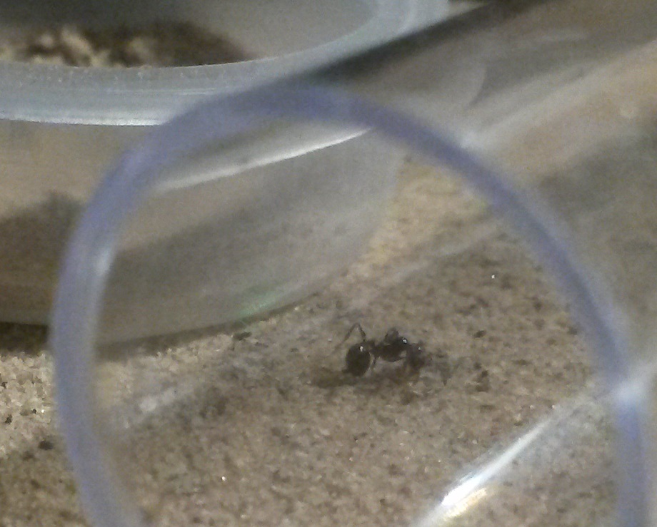 Ansonsten,zu jedem Zeitpunkt zu dem ich in das Formicarium schaue, ist mind. eine Ameise in der Arena unterwegs.