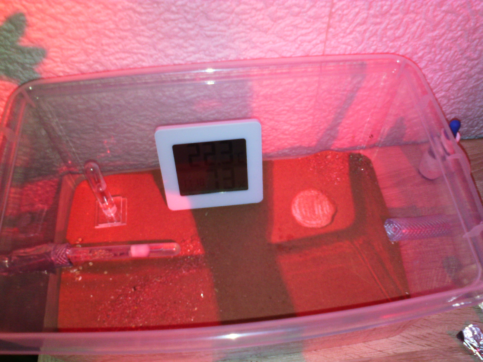 Ich versuche gerade unter Rotlicht ohne die MĂ€dels zu stressen in meine Arena, samt angebautem Reagenzglas umzusiedeln, weil mich das nervt das das Glas so sinnlos da rumliegt und Platz verschwendet.