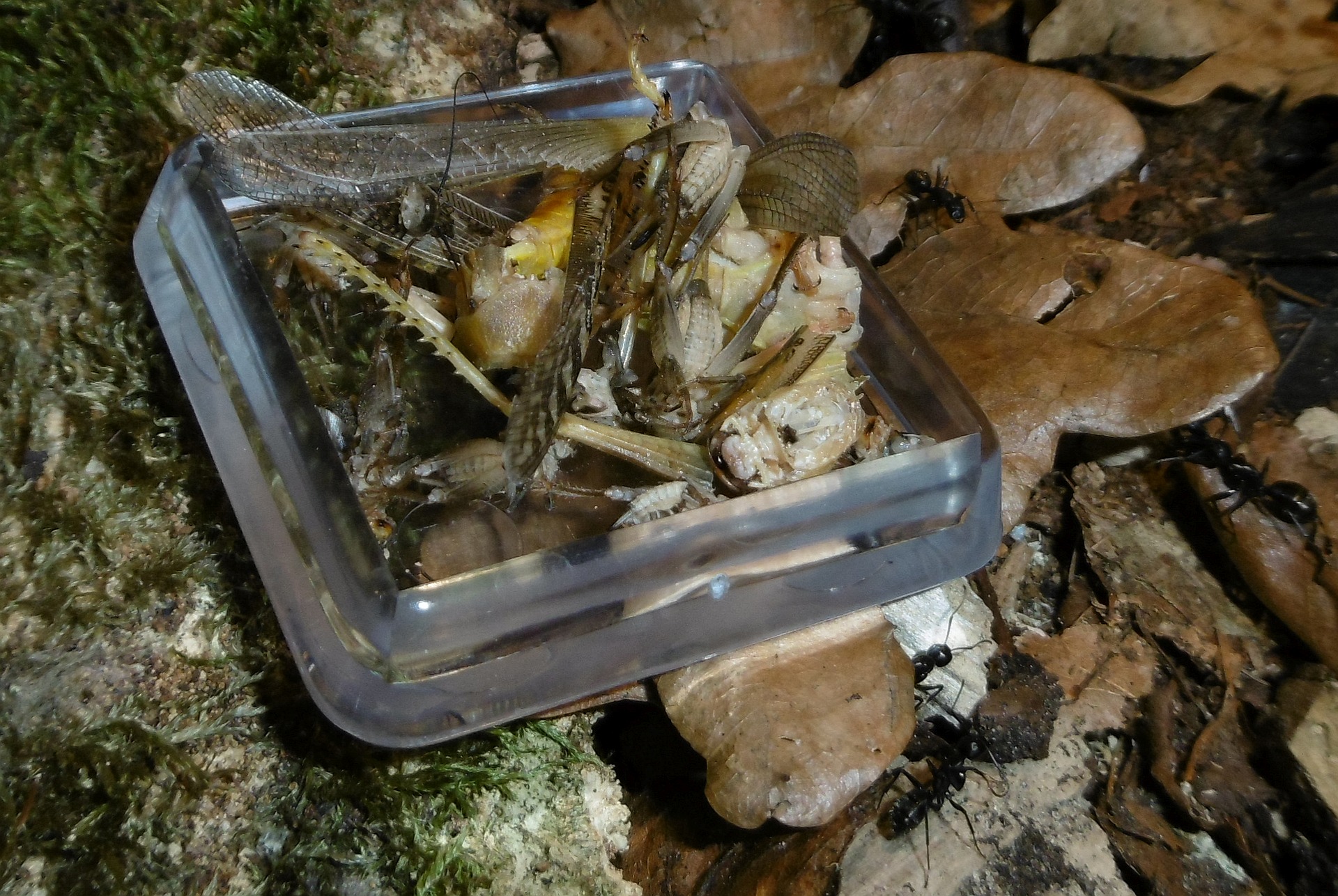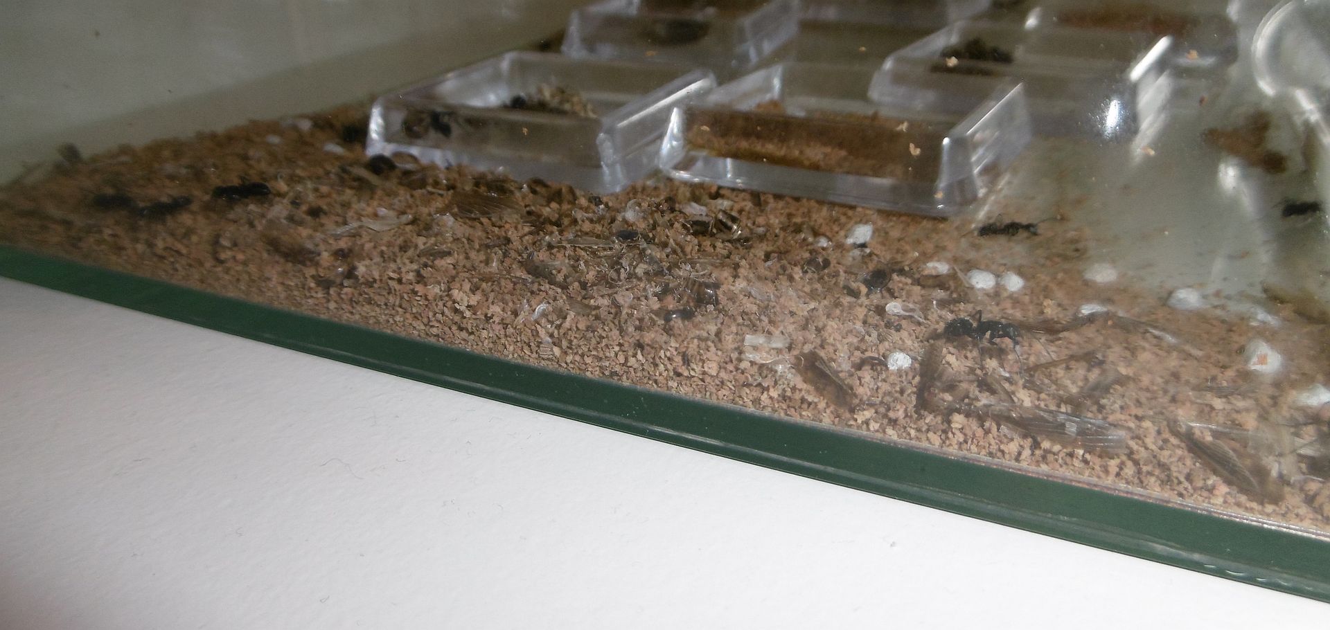Bei der Haltung auf Glas hatte sich gezeigt, dass es zwar machbar ist, hinter den Tieren aufzuräumen, aber doch einiges an Aufwand mit sich bringt. Die steigende Koloniegröße macht den Job natürlich auch nicht leichter.
