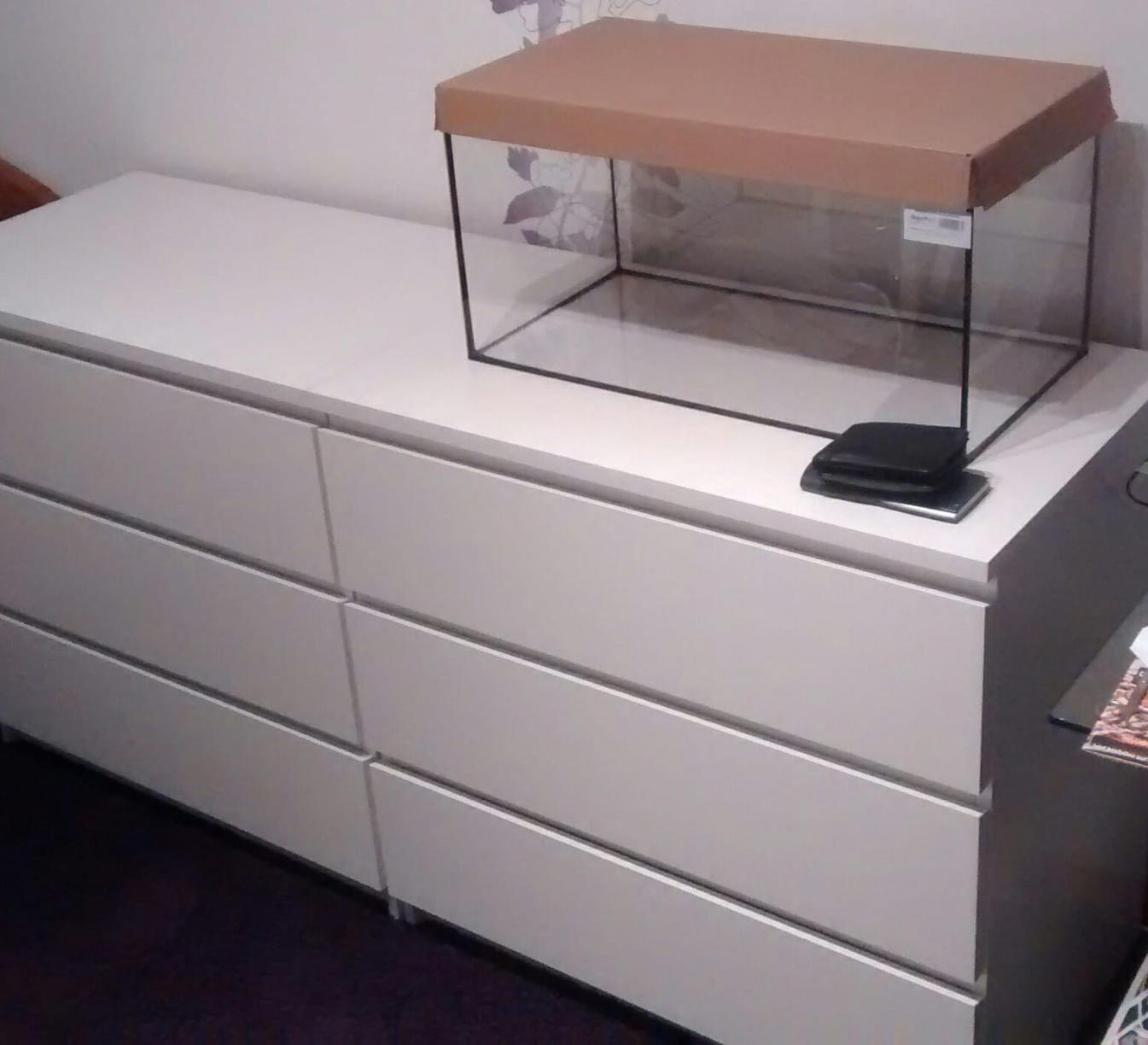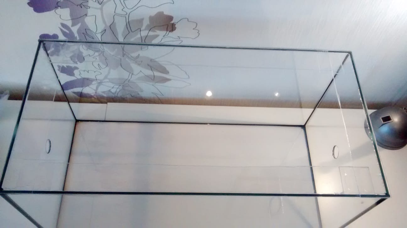 Als Becken dient ein günstiges 60 cm x 30 cm x 30 cm Aquarium, wie es sie in einigen Baumärkten für preiswerte 25€ gibt. Da die Baumärkte in meiner Umgebung leider keine Aquarien im Sortiment haben und sie auf Nachfrage auch nicht von ihren besser bestückten Partnerfillialen eines anliefern lassen wollten, habe ich das Becken notgedrungen bei Amazon bestellt. Grundsätzlich bekommt man die Dinger aber auch z.B. bei OBI (wenn der lokale Markt sie denn im Sortiment hat).