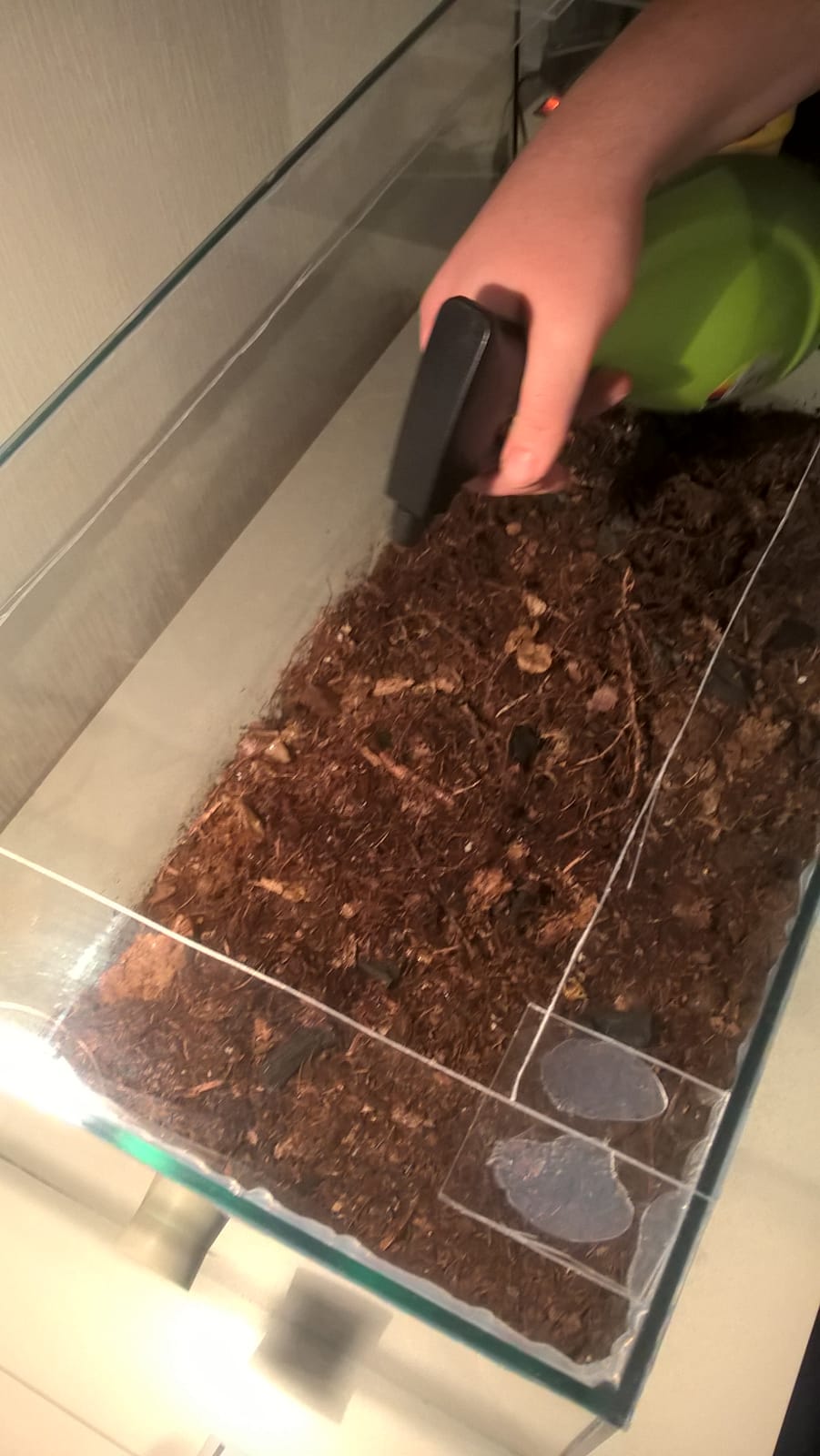 Zwischen den Schritten habe ich immer mal wieder das Substrat befeuchtet, um eine gute Durchmischung und Verbindung des Substrats zu erreichen: