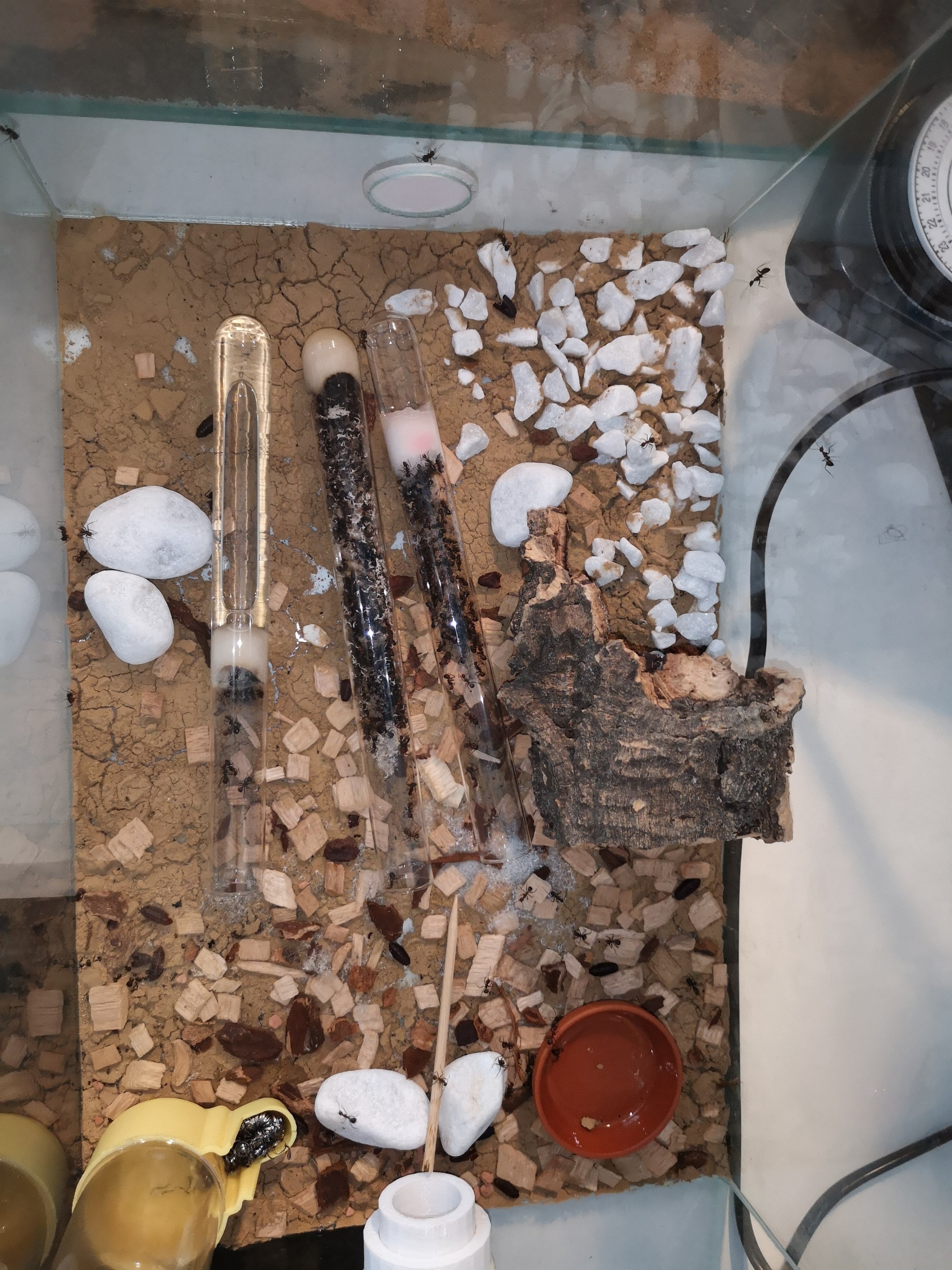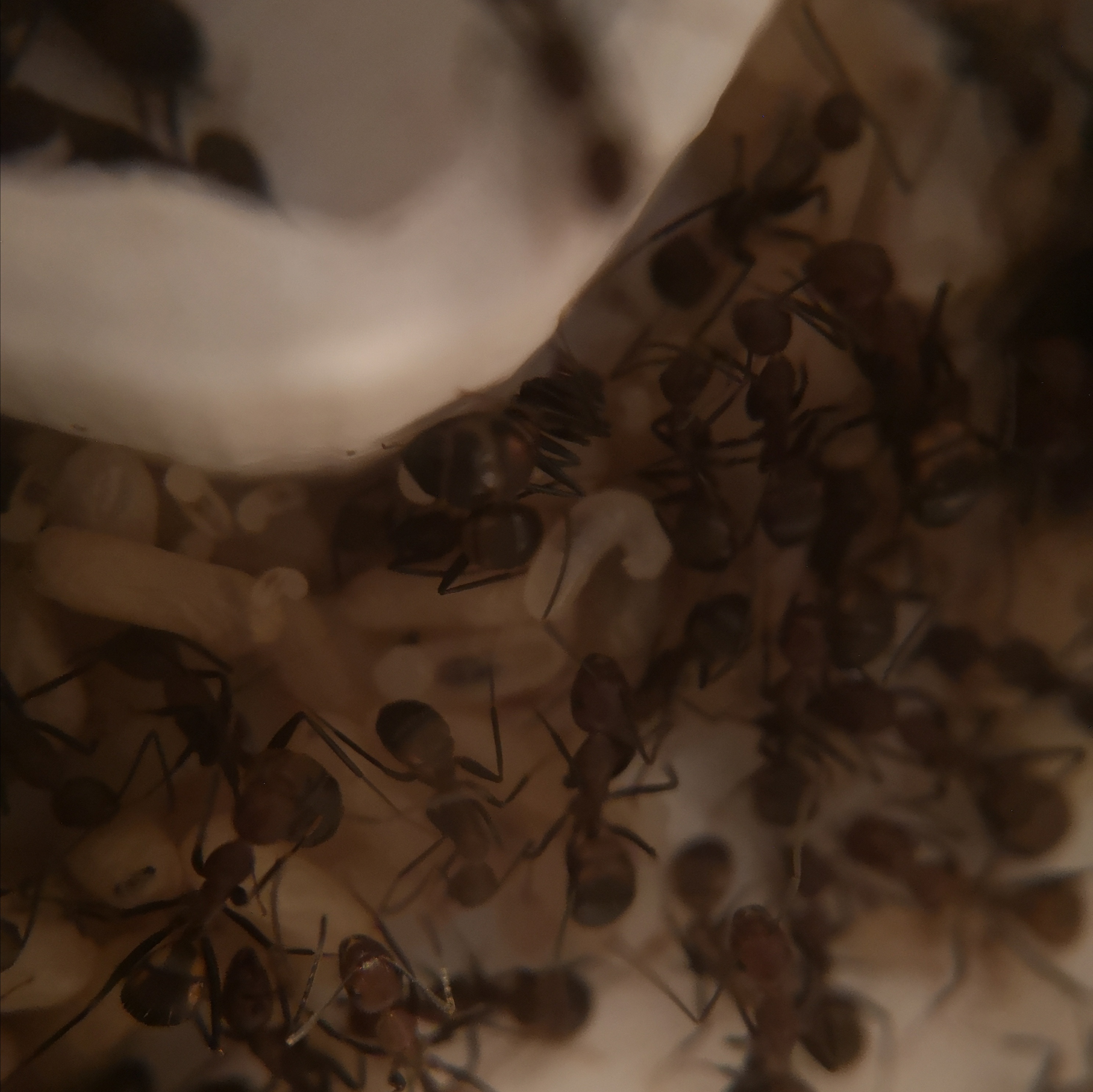 Beide Gynen hab ich aber nicht fotografieren können, da die Ameisen angefangen hatten Watte auf der Nestscheibe zu verteilen.