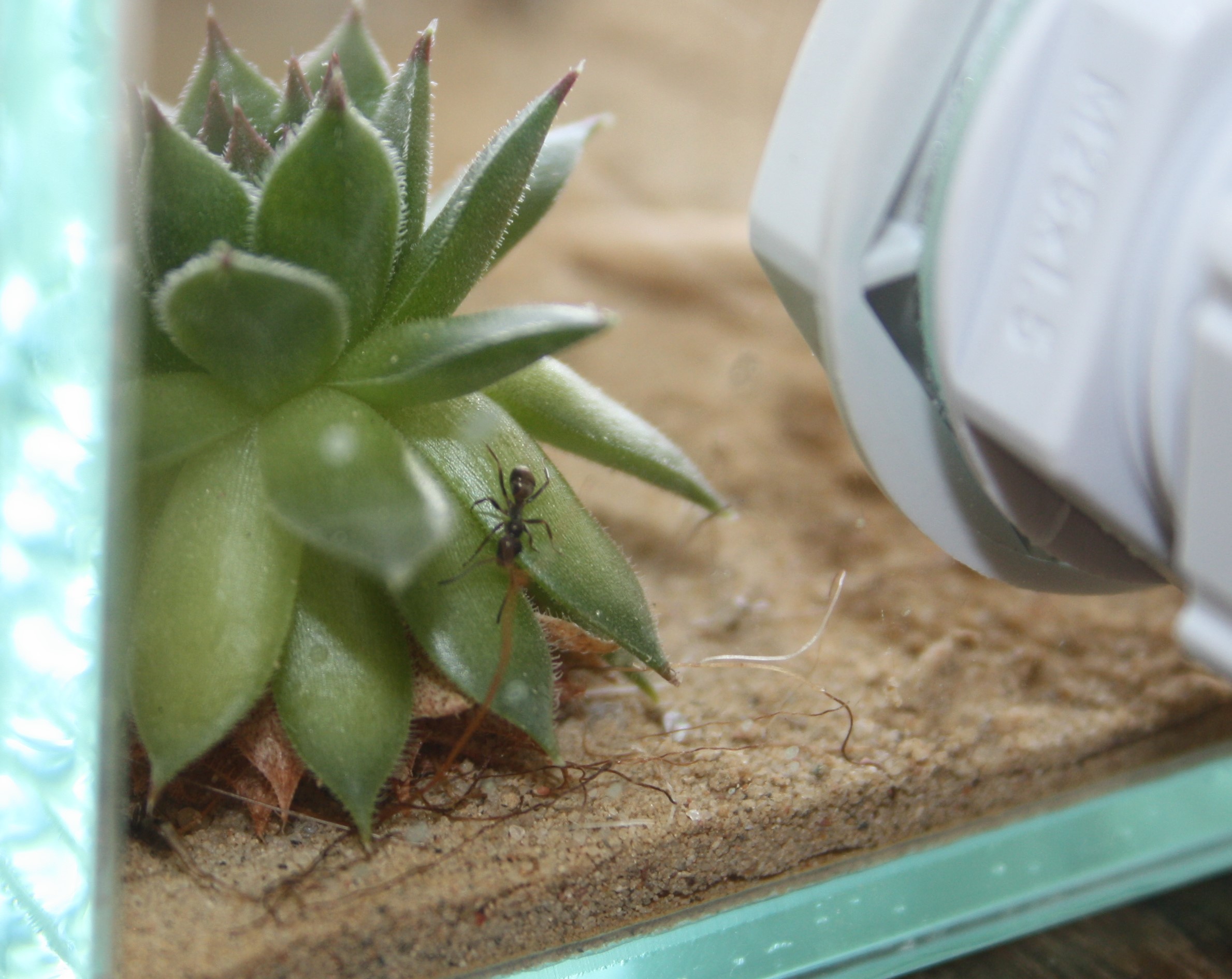 Gestern Abend habe ich dann zufällig ein Insekt gefunden und direkt den Ameisen angeboten. Hierfür habe ich das Insekt direkt am Nesteingang platziert und heute morgens war es verschwunden und nirgendwo auffindbar. Ergo sollte es eingetragen worden sein.