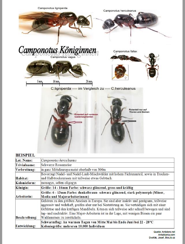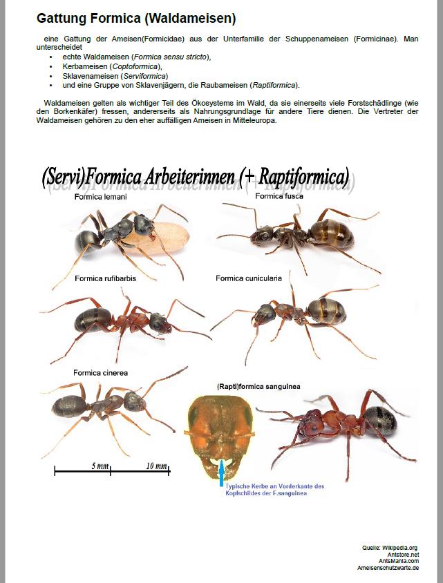 Das gesamte PDF umfasst derzeit 14 BlĂ€tter. Es soll Jugendliche nicht ĂŒberfordern, sondern Lust auf mehr machen. Deshalb will ich es so bĂŒndig wie möglich halten. Wer Lust auf mehr bekommt, dem empfehle ich "Die Ameisen Mittel- und Nordeuropas" von Bernhard Seifert. Zu diesem will und kann ich keine Konkurrenz sein. Deshalb will ich diese Jugend nur mit einem Vermerk auf die VielfĂ€ltigkeit unserer Arten hinweisen, ohne langatmig zu werden. Ich hab den Vermerk jetzt so drin, wie von Dir vorgeschlagen.
