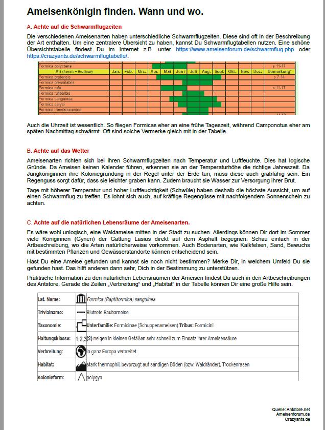 Hier noch eine ErklÀrtafel, wann man Ameisenköniginnen sucht und die letzte Tafel mit Arten.