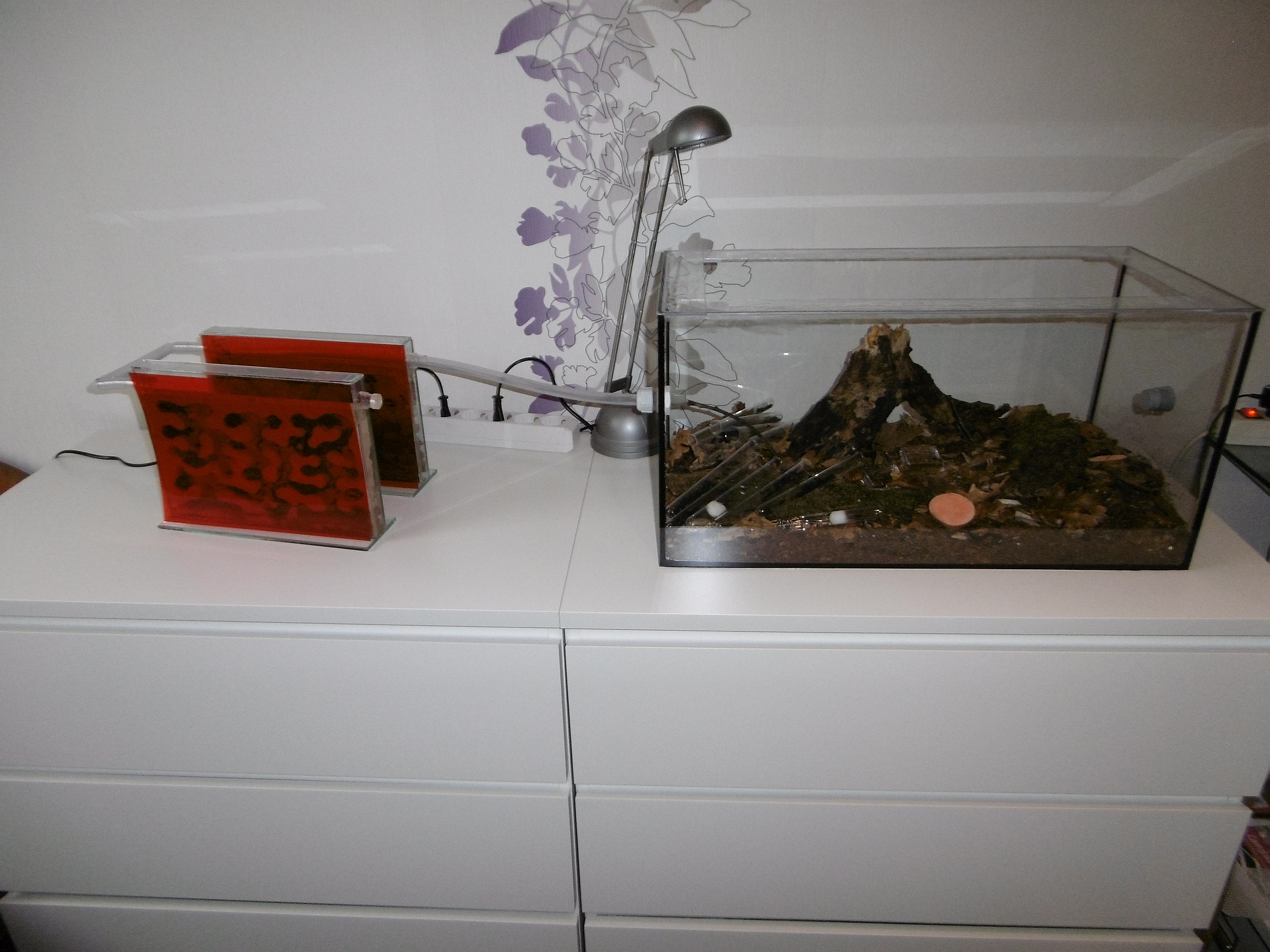 Somit war das Becken dann fertig eingerichtet. Mein Bruder und ich haben noch einige Zeit vor dem Terrarium verbracht und die Asseln beobachtet. Es handelt sich bei den Rollasseln um eine Zuchtform, die in der Natur nicht vorkommt. Sie werden als
