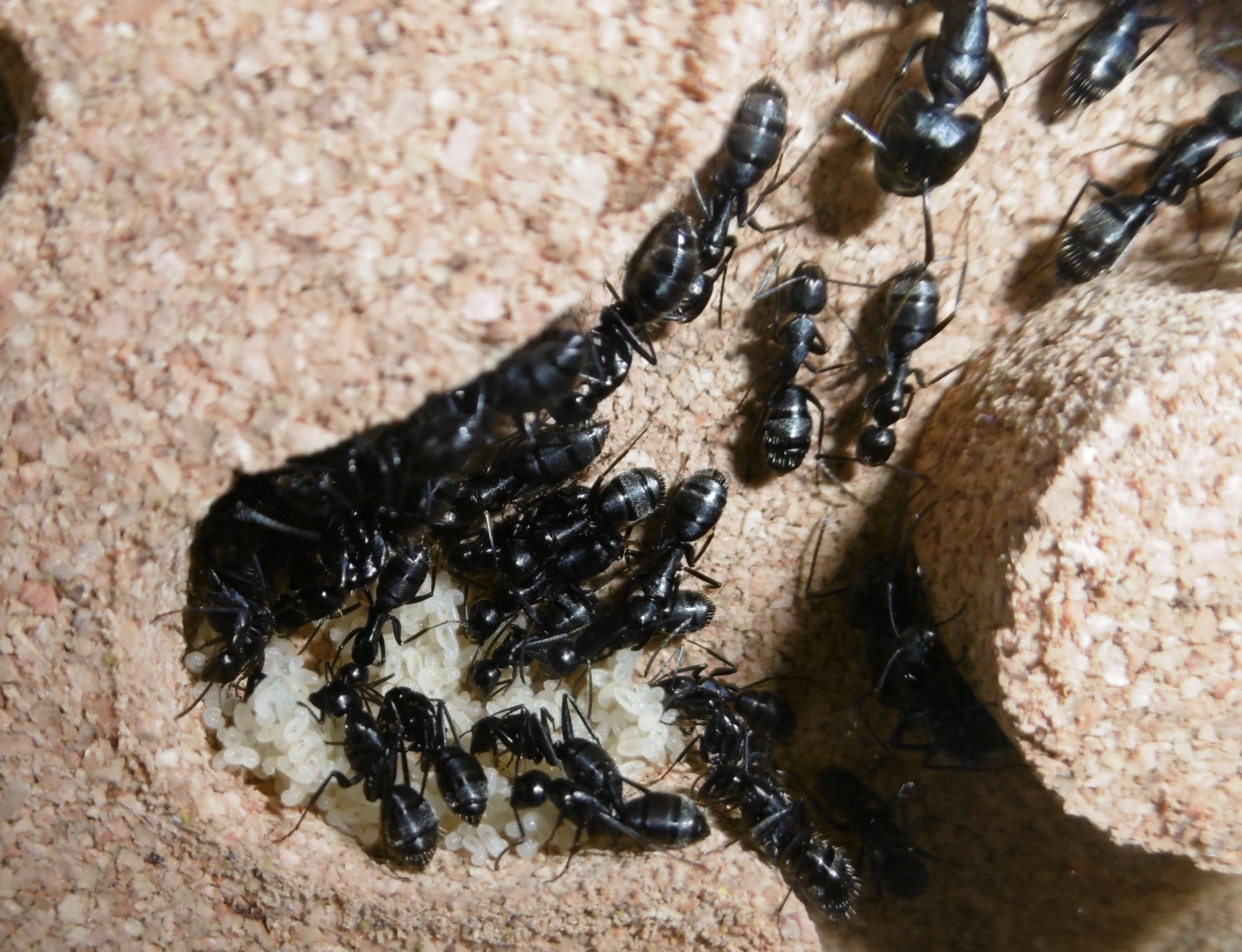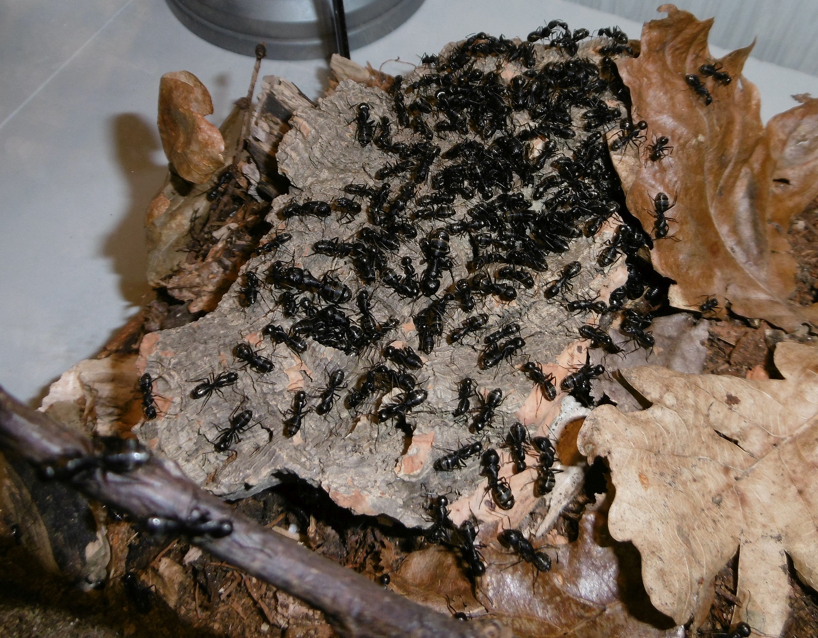 Bei der Haltung auf Glas hatte sich gezeigt, dass es zwar machbar ist, hinter den Tieren aufzuräumen, aber doch einiges an Aufwand mit sich bringt. Die steigende Koloniegröße macht den Job natürlich auch nicht leichter.