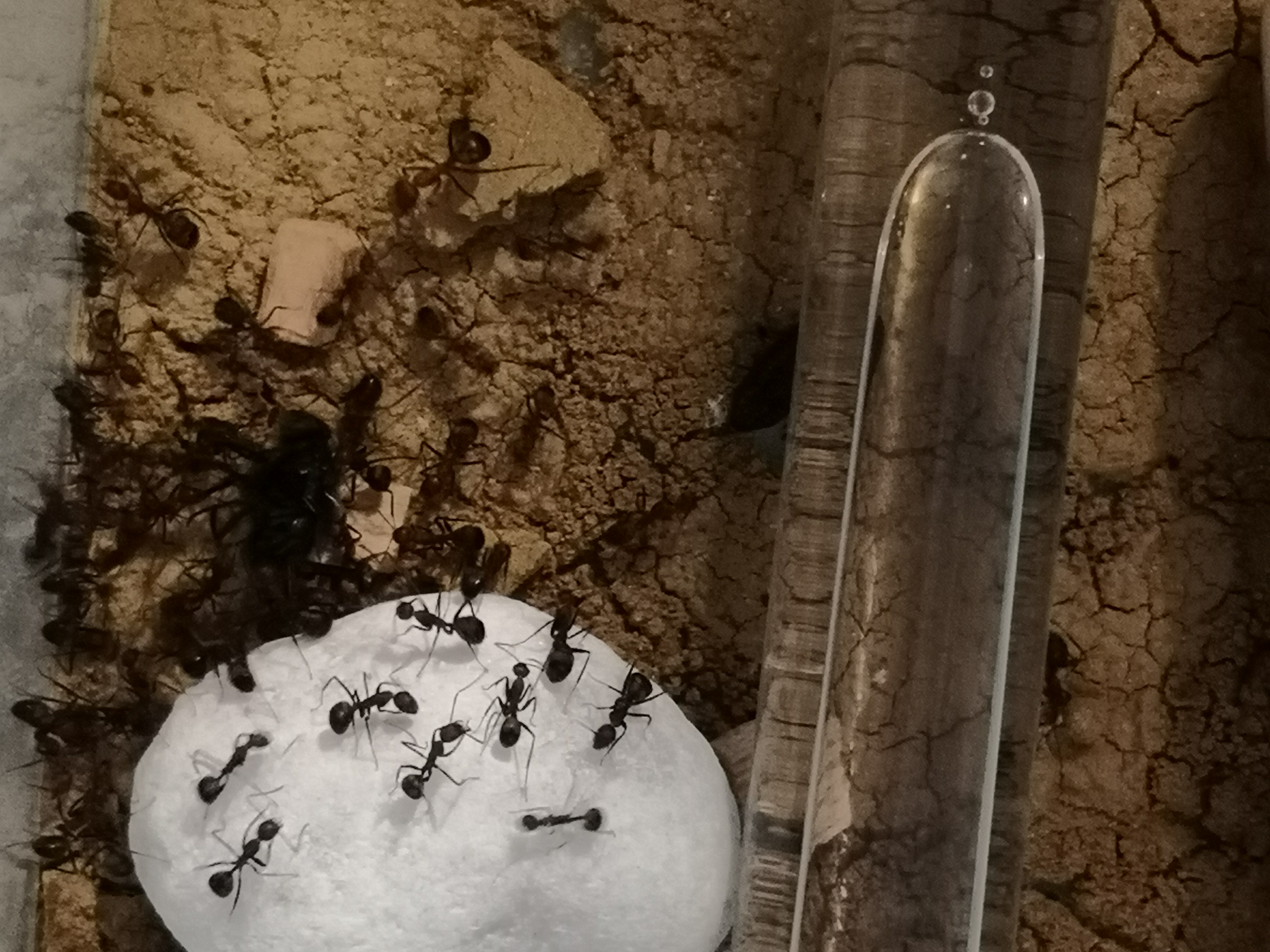 Statt Zuckerwasser bin ich mittlerweile komplett auf Agavendicksaft umgestiegen, den diese Kolonie nun, so wie meine Camponotus brasiliensis, gerne und viel annimmt.