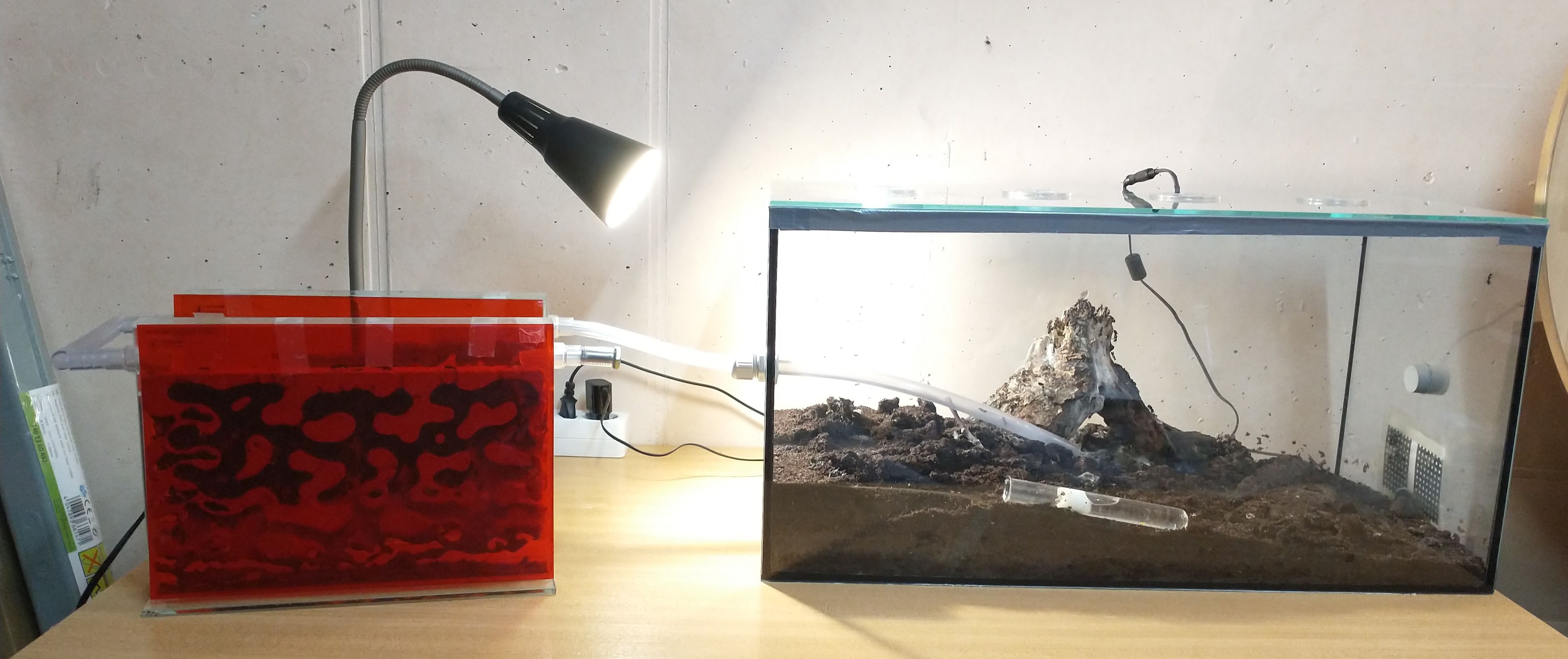 Gestern habe ich bei einer erneuten Kontrolle zwei Fotos gemacht. Die Fotos zeigen je eine der beiden Farmen. Dort haben die Ameisen bei den derzeit vorherrschenden kalten Temperaturen bereits dichte Wintertrauben gebildet: