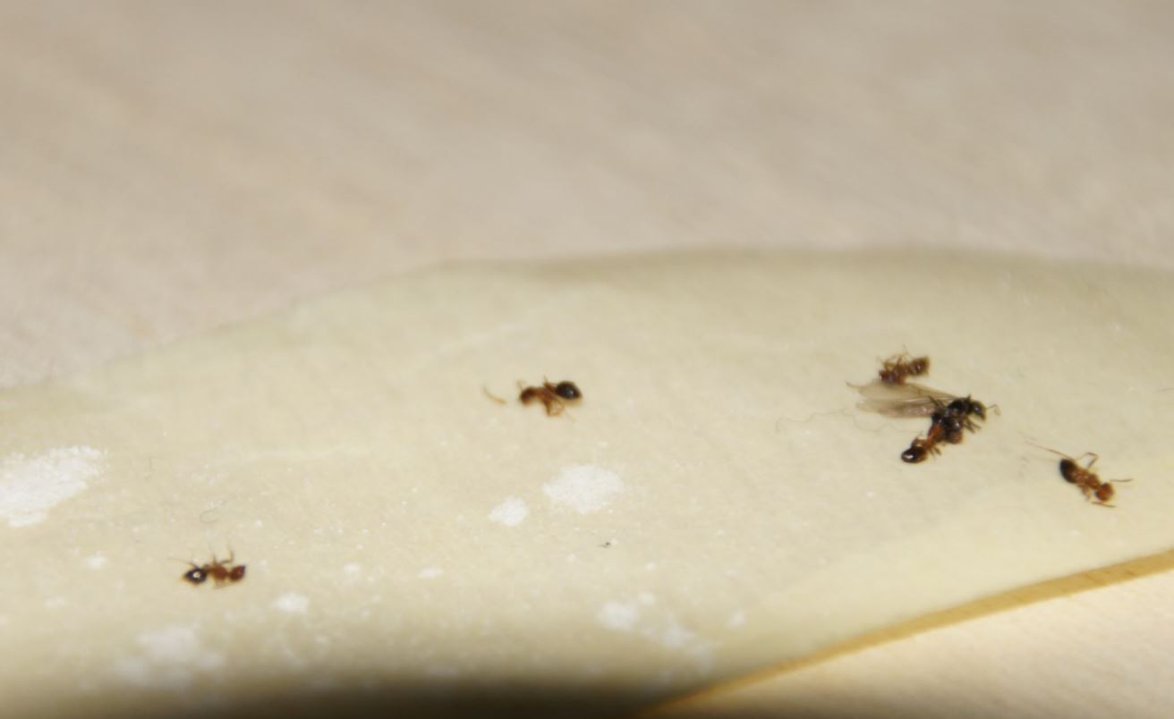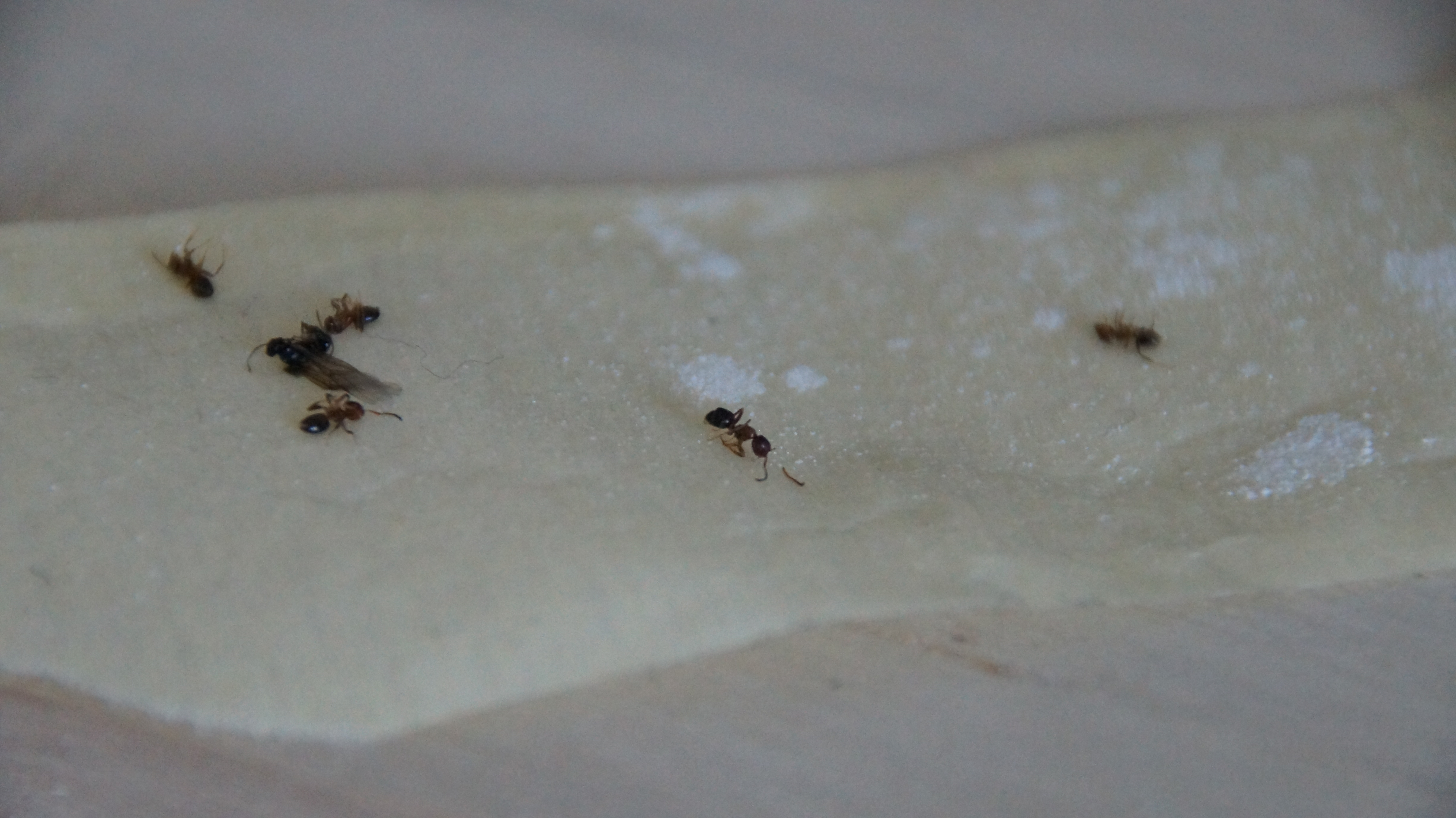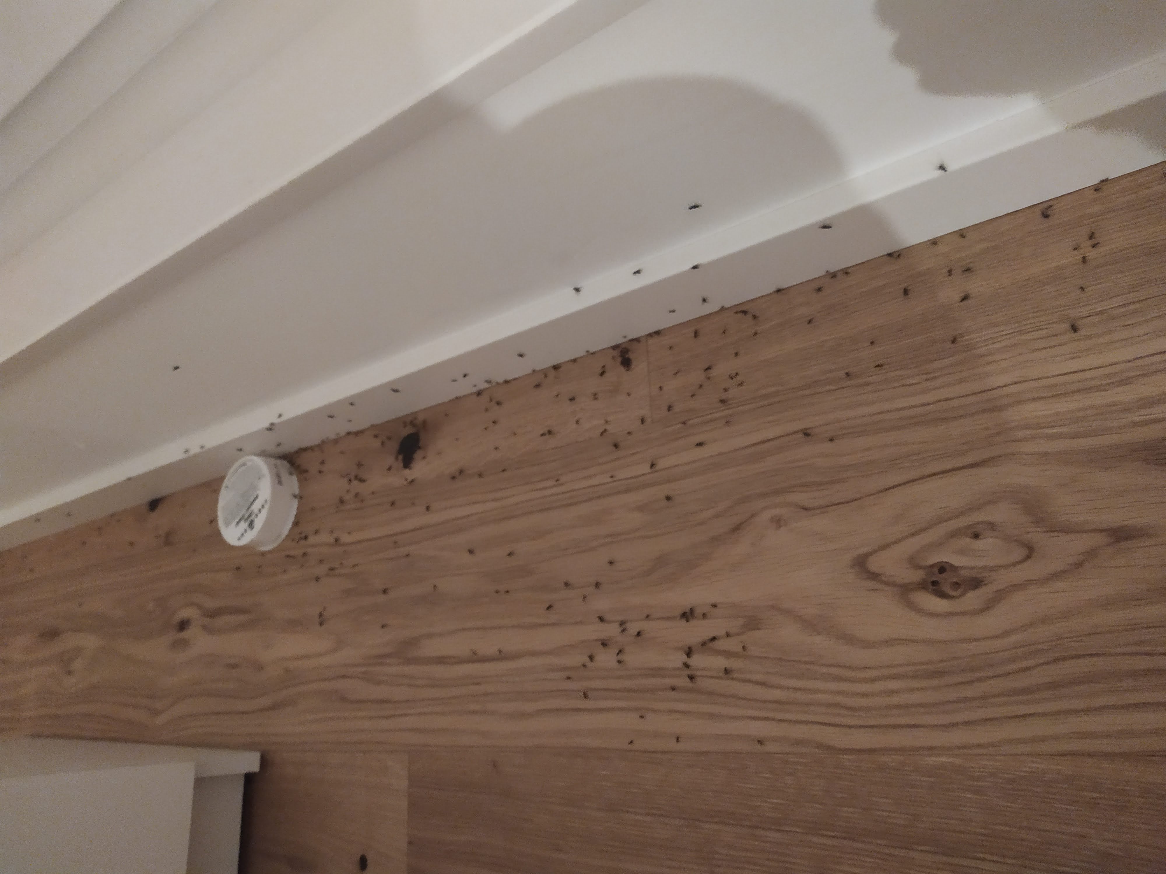Vermehrt haben wir dann vor den Fussleisten eine Art Brösel gesehen und dahinter mit der Pfeile rumgestochert: es kamen Ameisen zum Vorschein. Wir haben bereits erste Versuche mit Backpulver+Zucker sowie 4 Köderfallen aufgestellt, was die Ameisen aber leider nicht interessiert. Wir sehen sie eigentlich nur nachts und es sind schon einige. Auch fliegende Ameisen sind schon unterwegs leider.