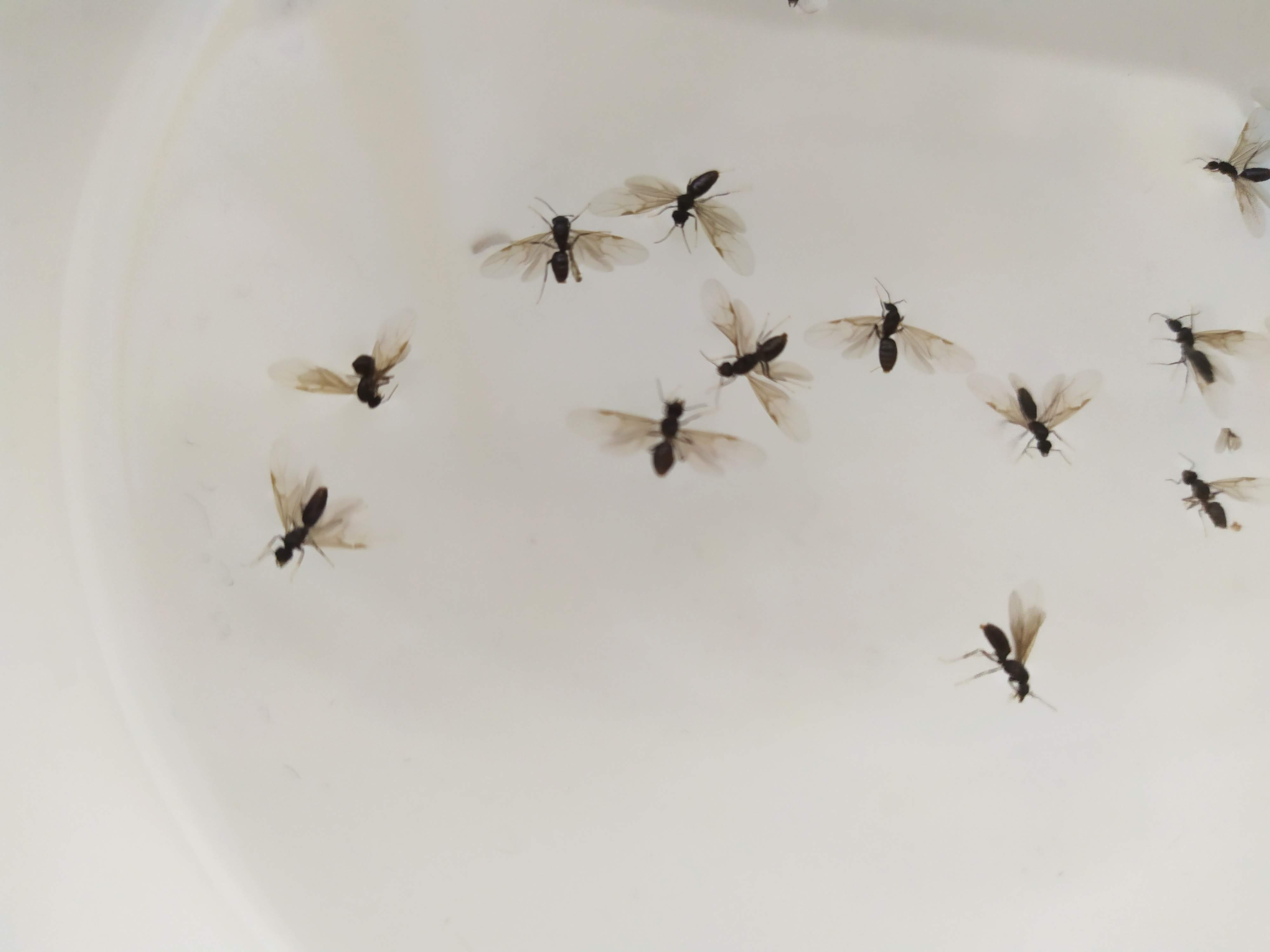 Zur besseren Bestimmung habe ich nochmals versucht bessere Bilder zu machen. Gestern nacht waren es total viele fliegenden Ameiesen, die ich teilweise mit Zuckerwasser fangen konnte. Ich habe bereits mit einem Schädlingsbekämpfer telefoniert der meinte, dass die Ameisen währen dem Hochzeitsflug keine Nahrung annehmen und meine Köderboxen dadurch wirkungslos sind/bleiben.