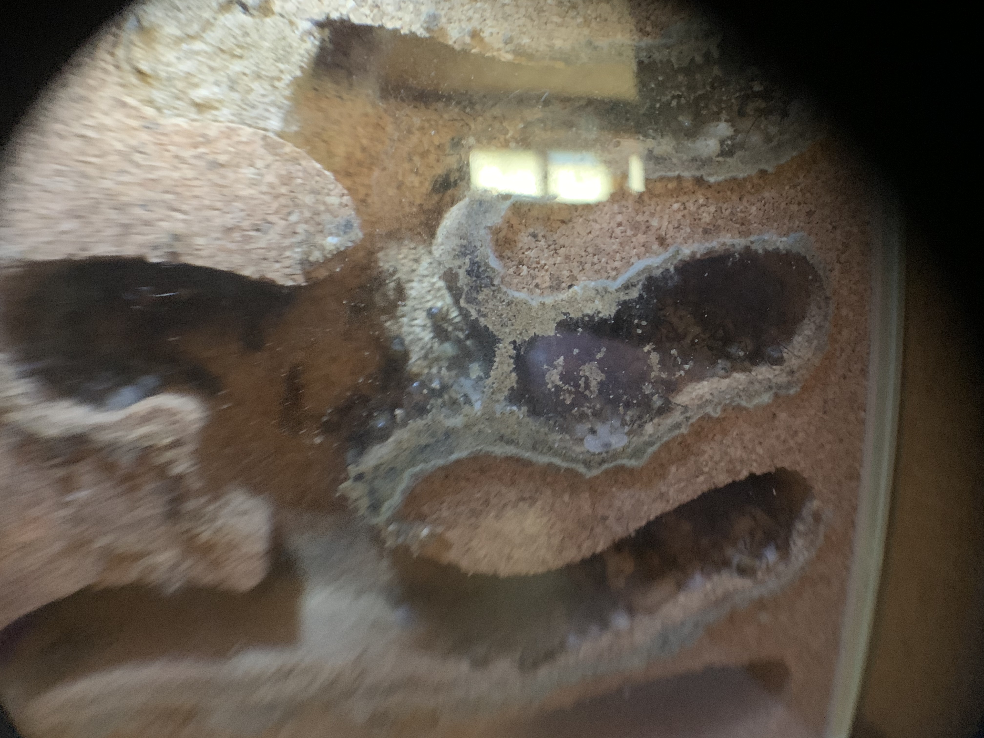 Ich habe vorhin mal das Nest genauer angeschaut, die Ameisen haben zwischen Glas und Korknest den kleinen Zwischenraum mit Material aus der Arena zugestopft!