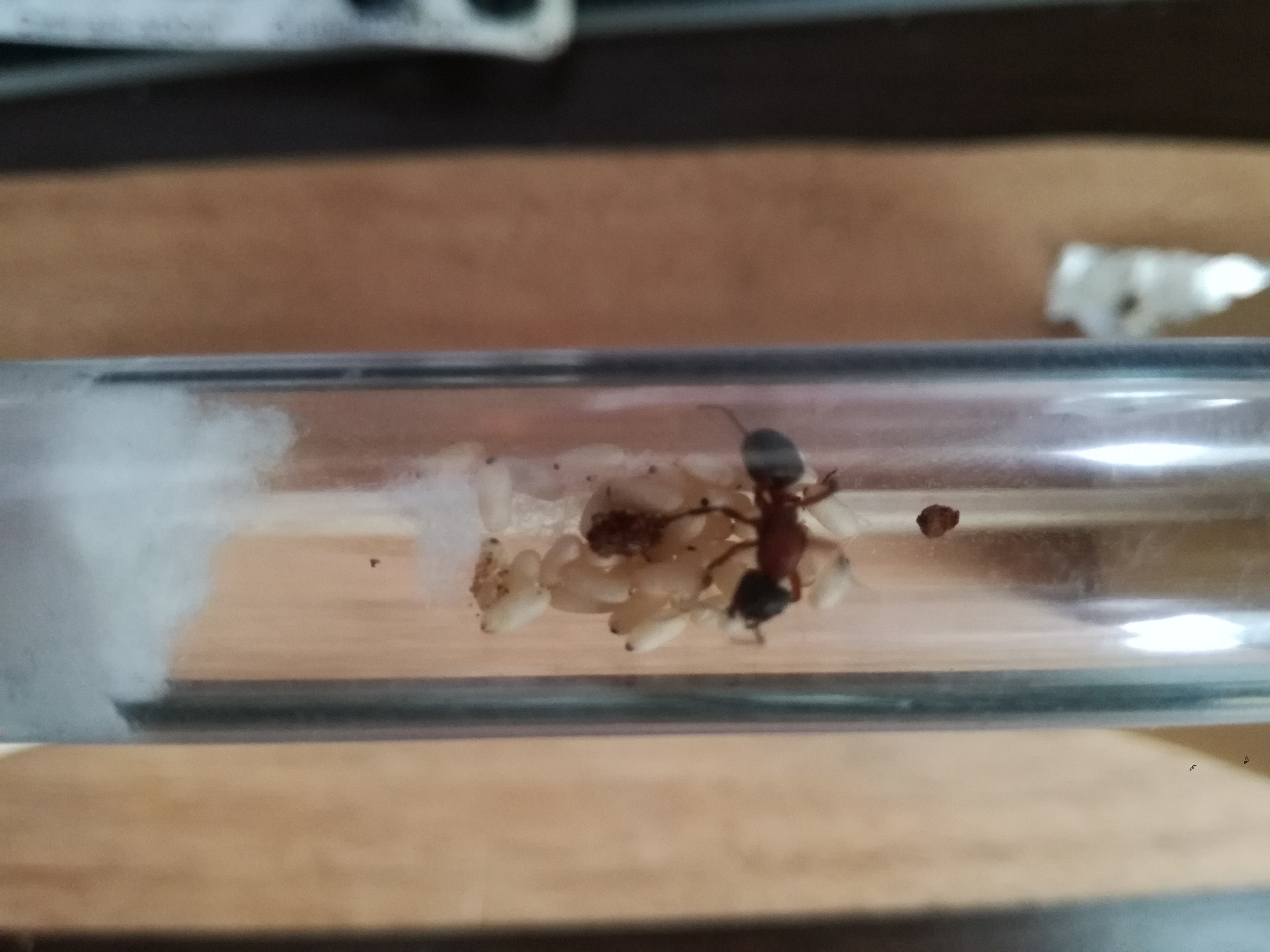 Raptiformica sanguinea gefunden und habe zufällig auch letzte Woche eine Serviformica gefunden, welche aktuell schon Eier hat.