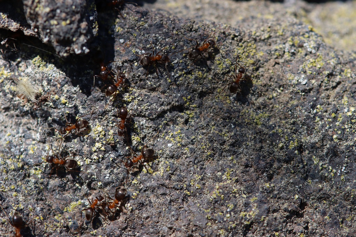 ich habe diese Tiere wĂ€hrend eines Spazierganges am 24.03.21 (in D, BW, Kaiserstuhl, Gemarkung Vogtsburg) am Rande eines Weges im RebgelĂ€nde fotografiert. Die Ameisen sahen Ă€hnlich wie die von meiner Anfrage vom 04.03.21 aus, die als Untergattung Serviformica bestimmt wurden. Diese waren jedoch kleiner. Ich schĂ€tze ihre GrĂ¶ĂŸe auf maximal 4-5 mm. Kann man anhand der Bilder eine Aussage treffen?
