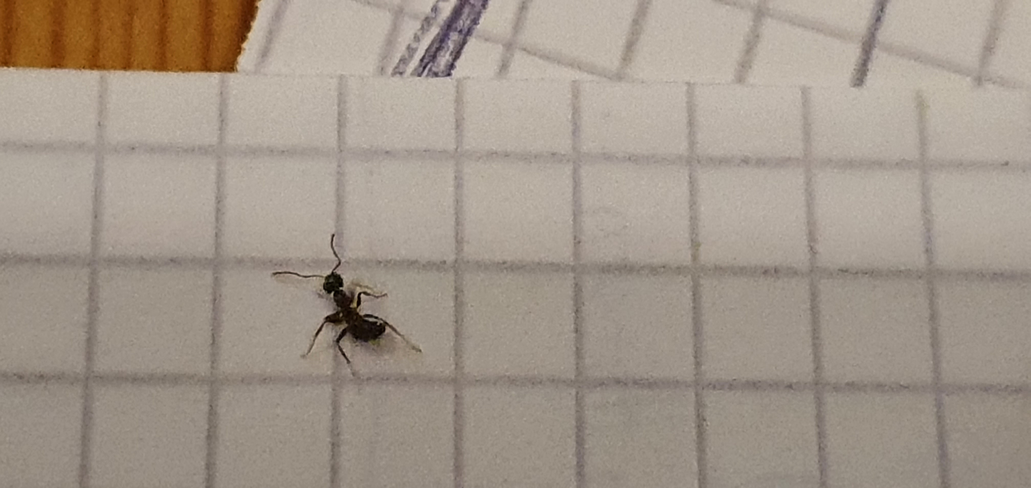 ein KĂ€stchen hat 5 mm . Die Ameise hat ca 4mm