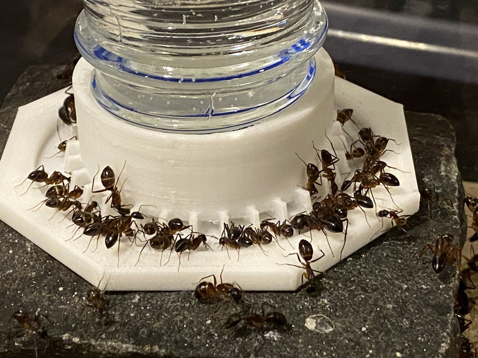 Der tatsĂ€chliche FlĂŒssigkeitsbedarf hĂ€ngt von mehreren Faktoren ab wie z.B. die Ameisen-Art, KoloniegröĂe, Brutmenge, Temperatur im Raum bzw. Formicarium und Nest, Nestform, -Material- GröĂe, wird das Nest vom Halter befeuchtet oder nicht, ....