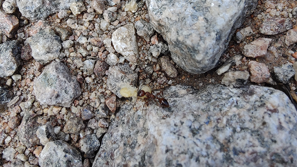 Ganz zur Freude dieses frech guckenden Rotschwanzes, der Sekunden vorher eine Serviformica Gyne verspeist hatte...