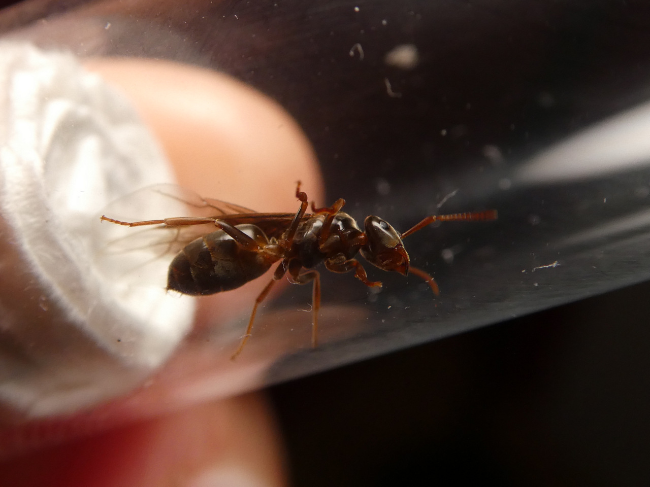 erst jetzt das Nest verlassen haben. Vielleicht handelt es sich bei dieser Gyne um einen Einzelfall und es fand gar kein Schwarmflug statt.