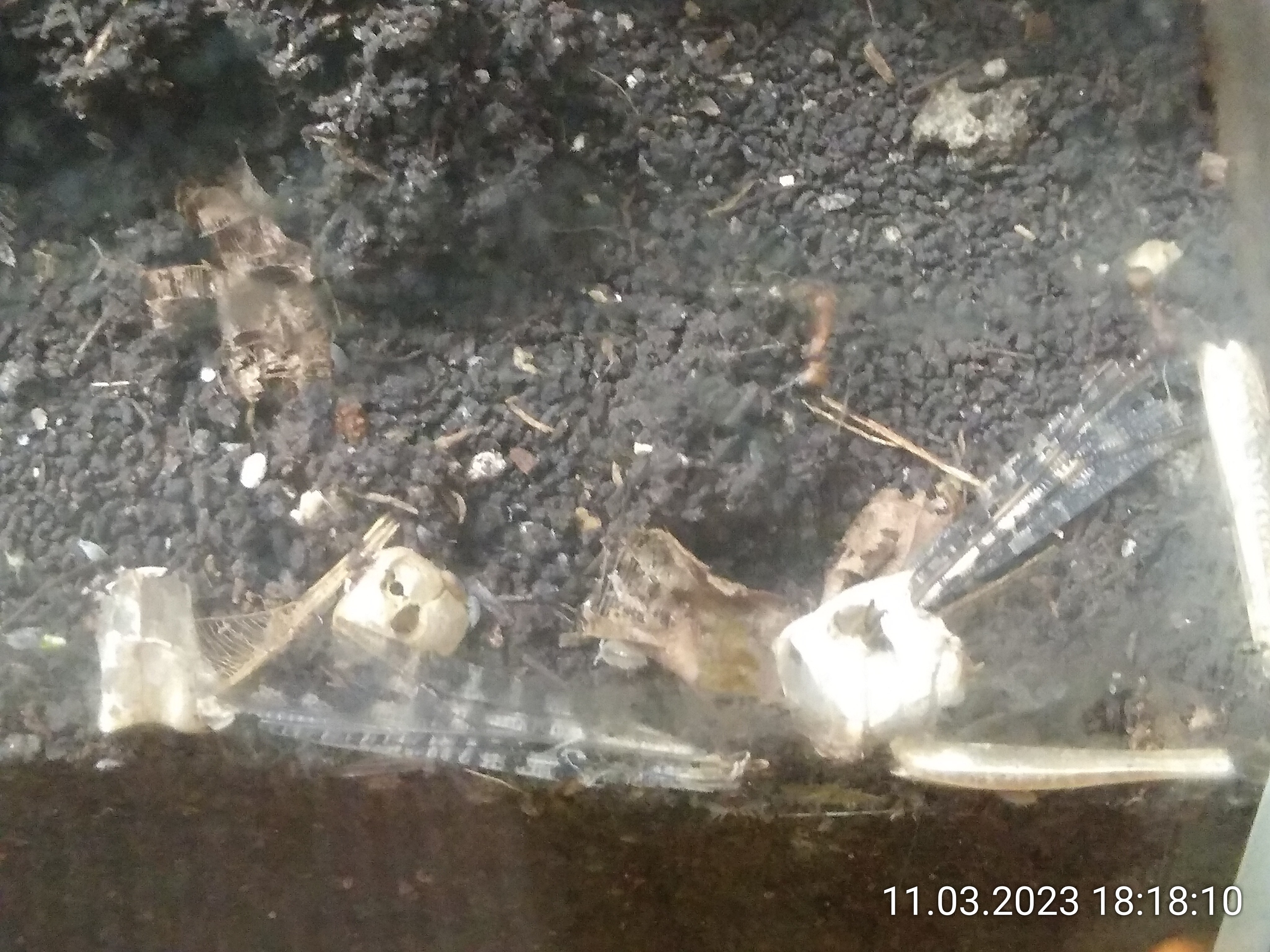 Ich habe noch ein Bild der sich langsam auflösenden Heuschrecke gemacht. Schimmel kann ich nicht mehr erkennen.