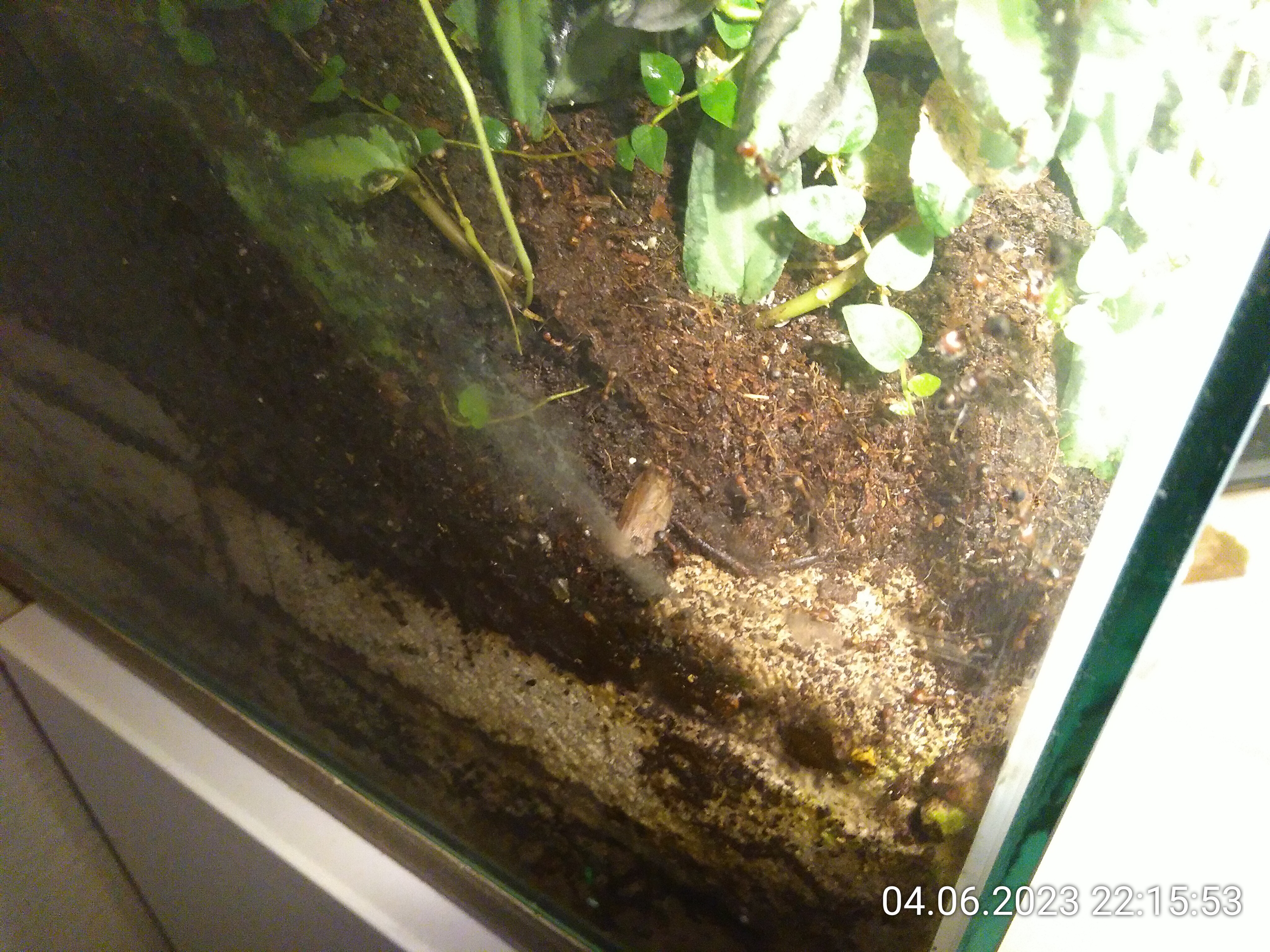 Die Ecke vorne links im Dschungel, die ich letzte Woche mit dem Assel-Substrat aufgefĂĽllt habe, sieht heute so aus.