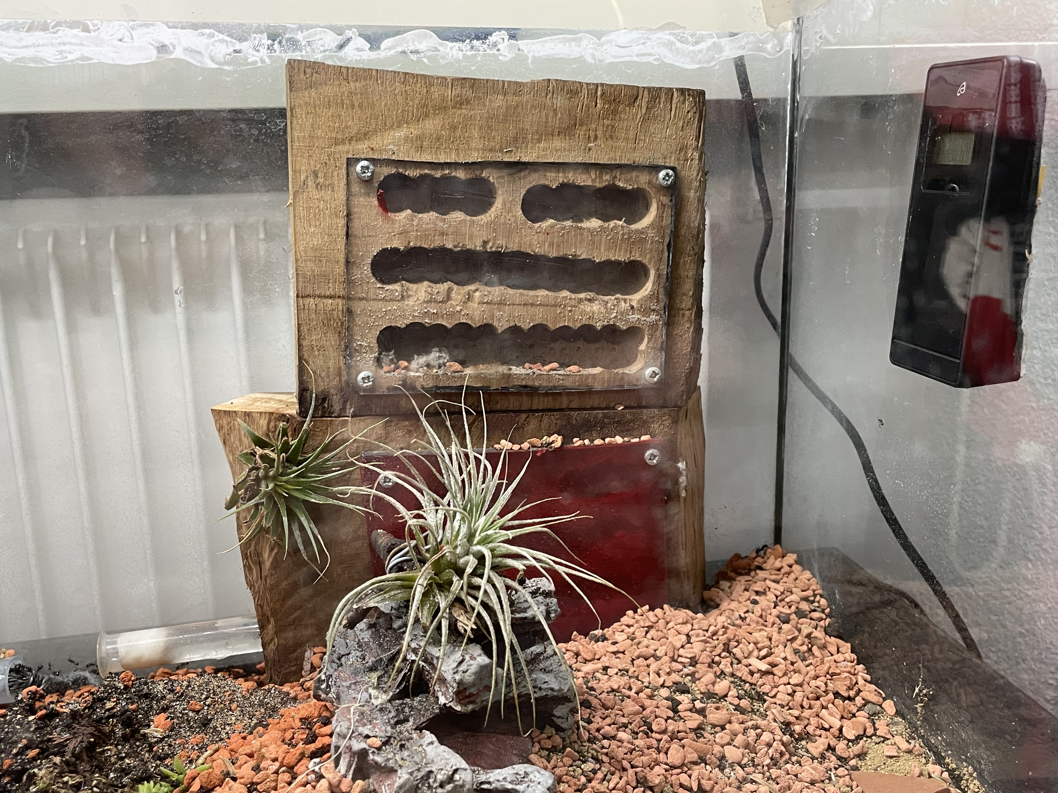 Hab das 2. Holznest jetzt wieder oben drauf gestellt und hab die teure rote Folie entfernt, die Ameisen sehen dadurch nicht hinaus aber ich auch nicht hinein