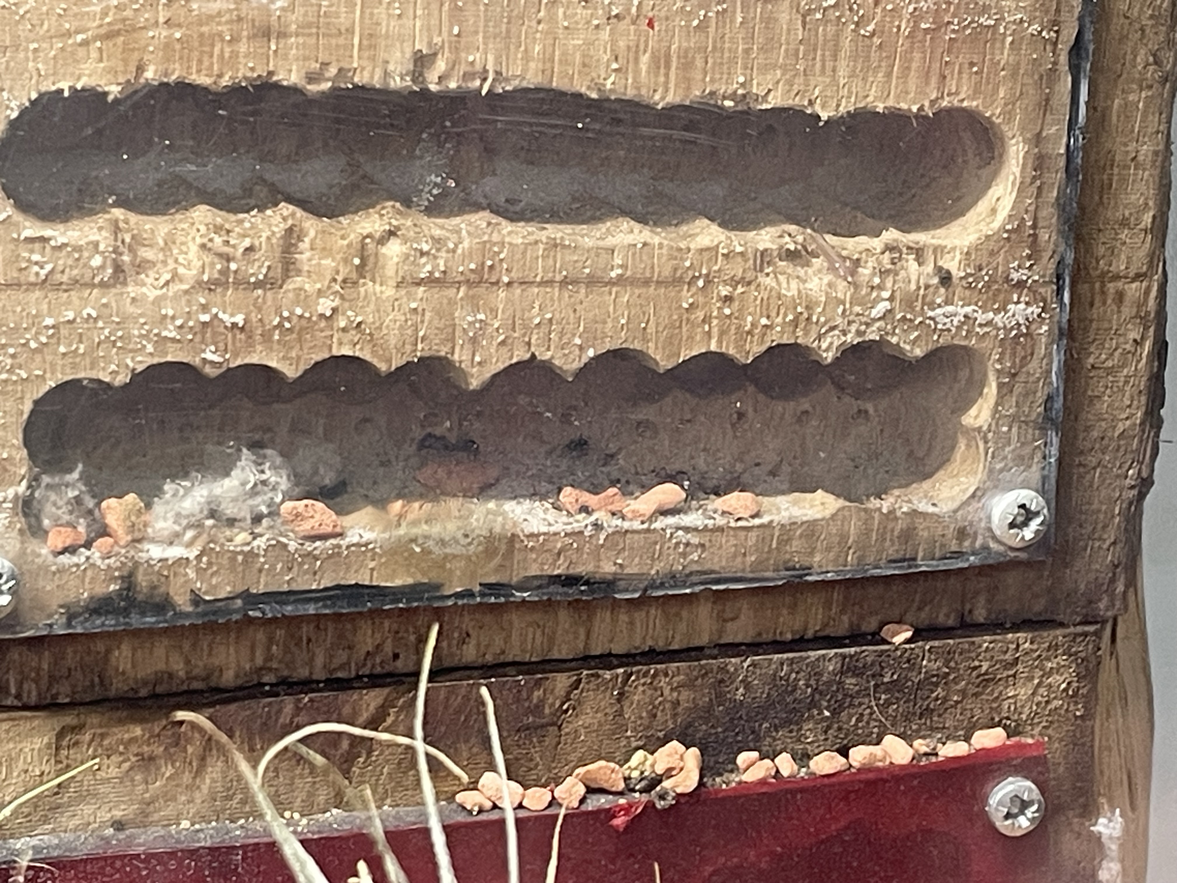 Hab das 2. Holznest jetzt wieder oben drauf gestellt und hab die teure rote Folie entfernt, die Ameisen sehen dadurch nicht hinaus aber ich auch nicht hineinâŠ