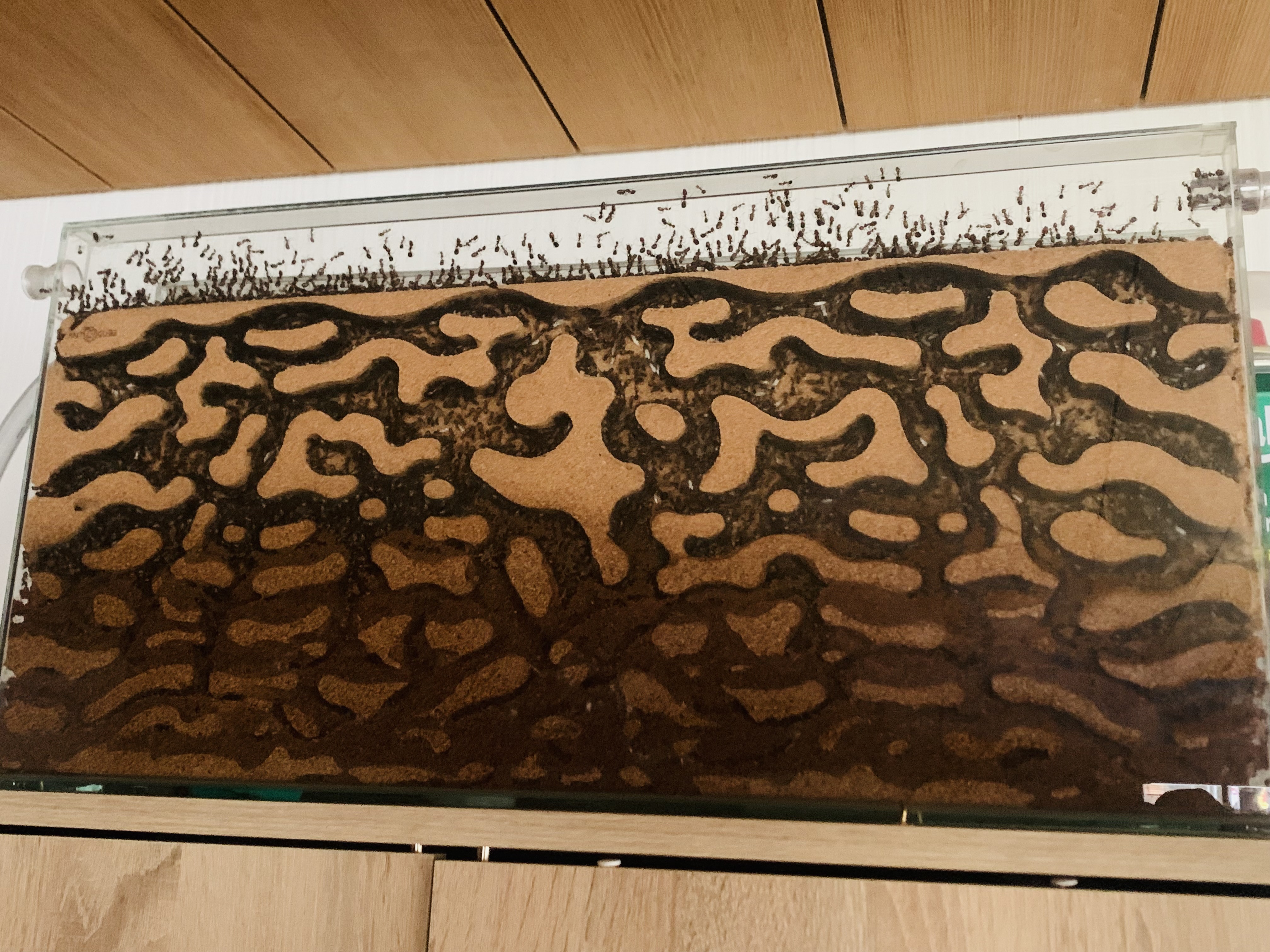 Halt, halt, in Trauer bin ich dieses Mal nicht, im Gegenteil, ich bin irgendwie froh, dass die Kolonie etwas dezimiert, denn in der anderen Arena 400x200x100 (dort wo es bis vor einiger Zeit immer Wasser gab) läuft mir die Ameisenhaltung fast aus dem Ruder!
