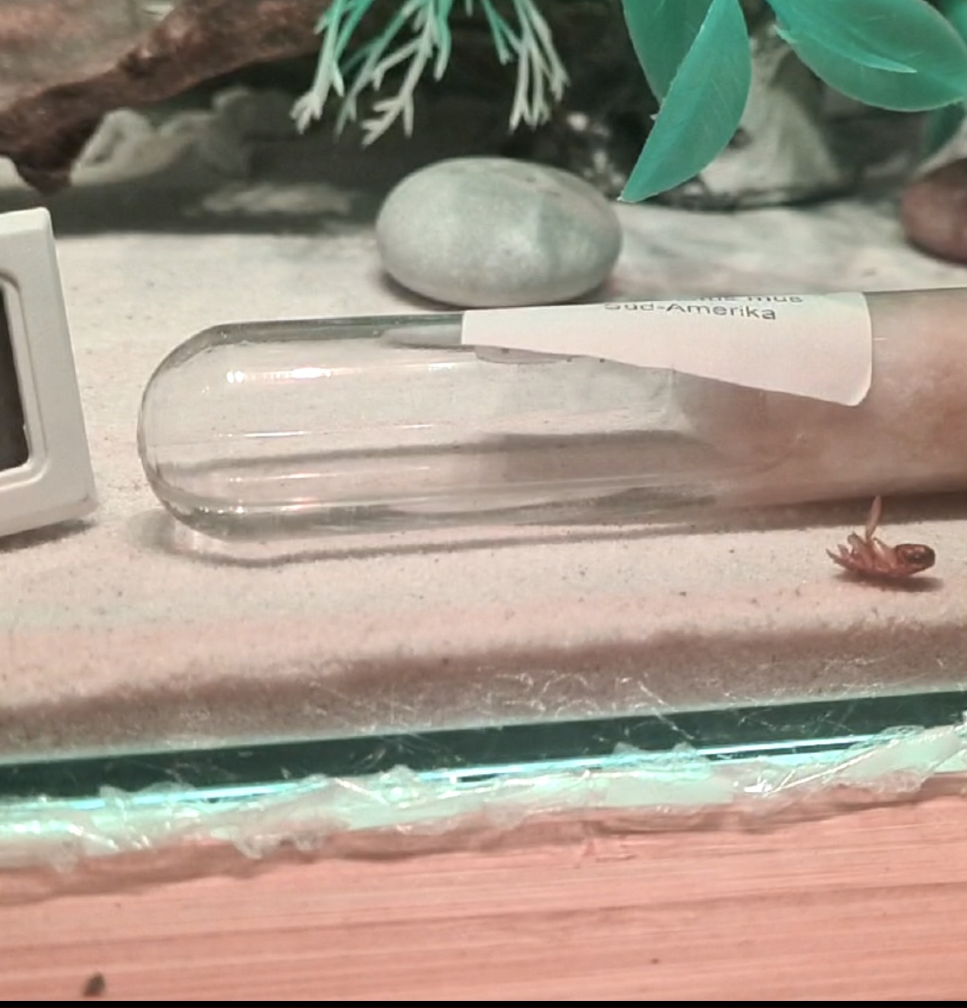 Es ist jetztaif jedenfall viel viel mehr AktivitÀt im Formicarium. Gestern waren dann doch noch 3 Arbeiterinnen an der Schockoschabe zu gange. Konnte auch beobachten wie eine nach der anderen aus dem Nest zur TrÀnke ging und sich die
