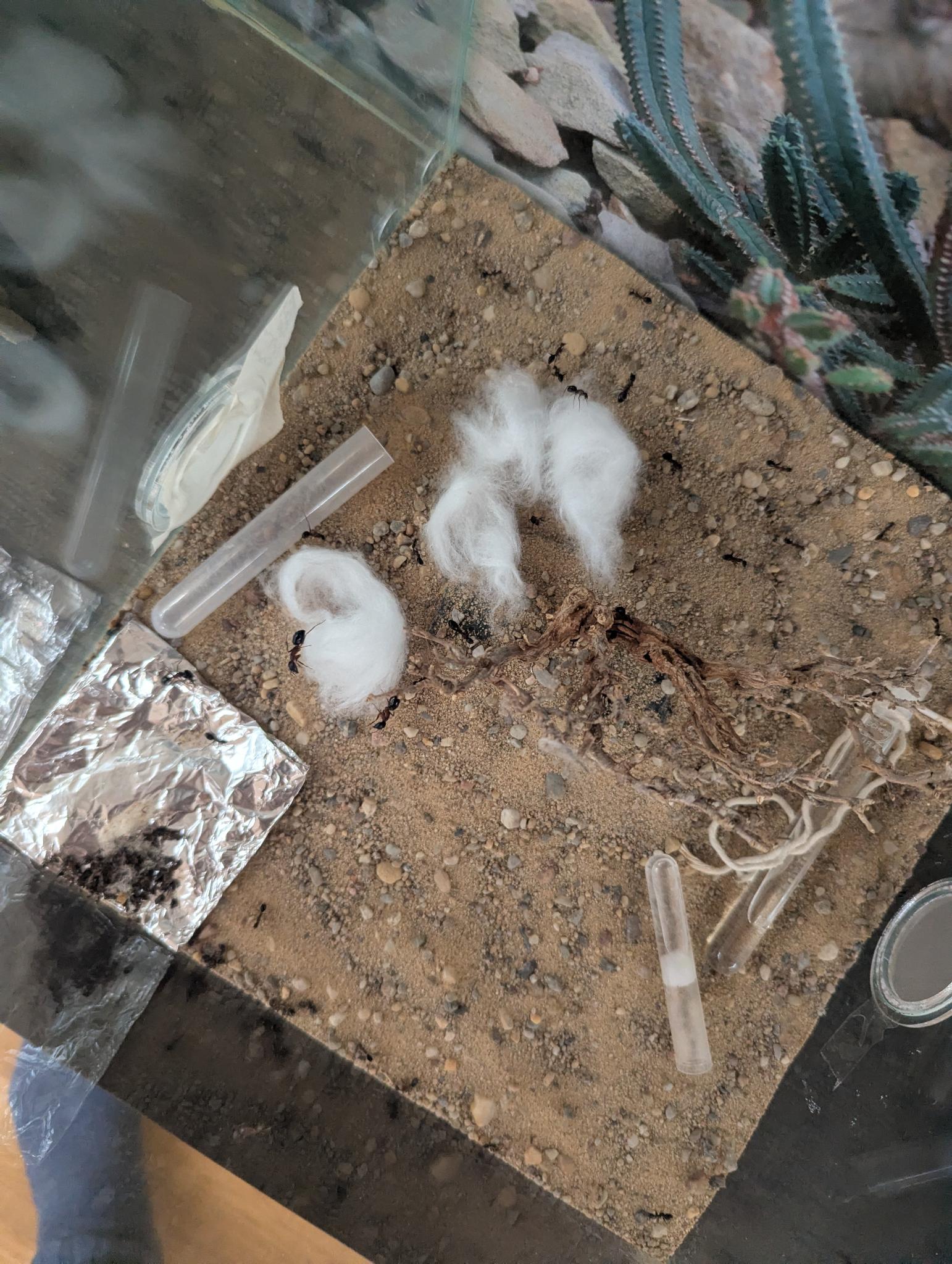 Irgendeine Meinung ob ich die Watte dann bereits entfernen soll? Ich hab etwas Sorge zurück zu kommen und das gesamte Nest ist mit zig Arbeiterinnen bedeckt xD