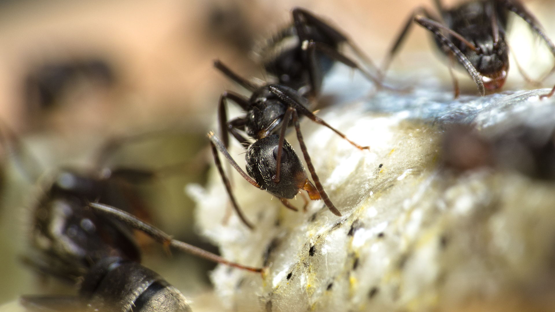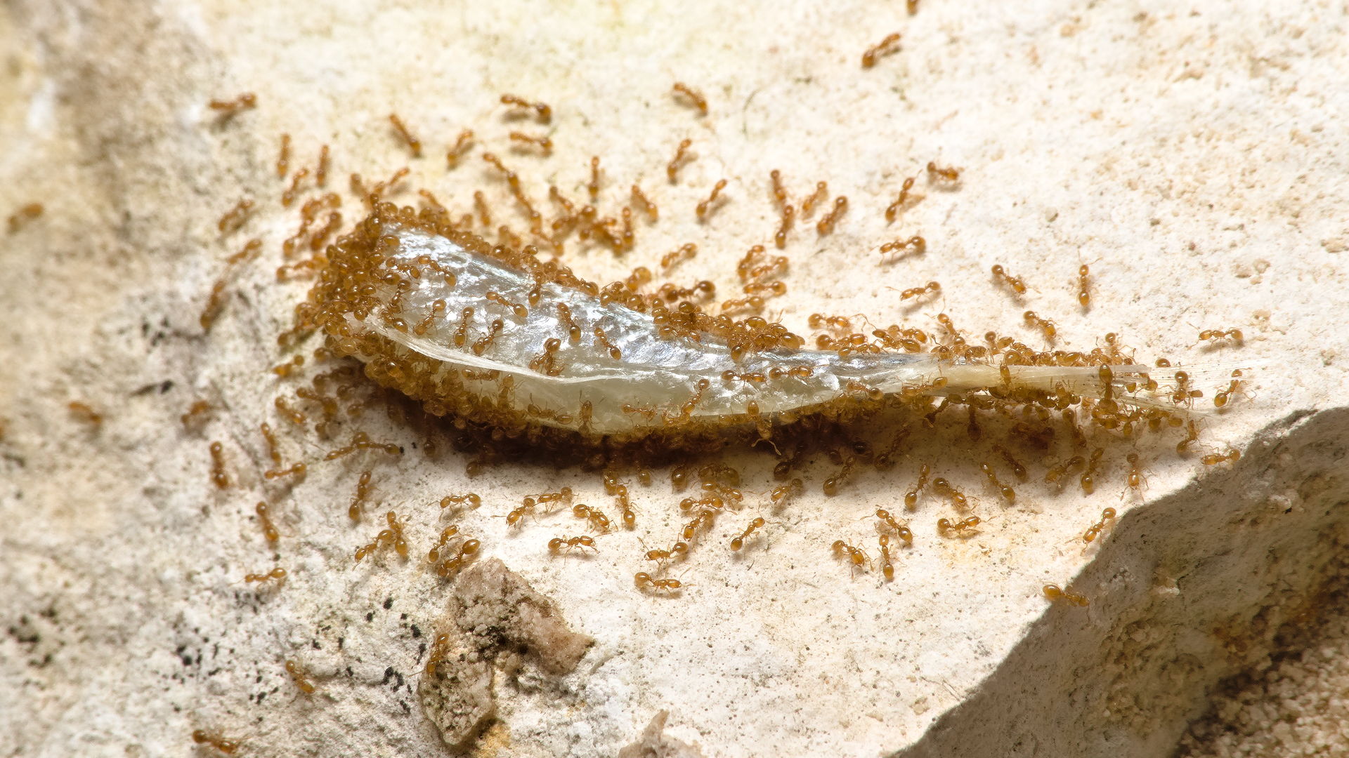 Solenopsis fugax, Camponotus cruentatus und Camponotus brevis fressen Stücke von einem Stint. Heute im Baumarkt in der Zooabteilung im Gefrierfacht entdeckt und gleich mal 100g davon gekauft (Preis war 3€ für 100g, also 30€ / kg)