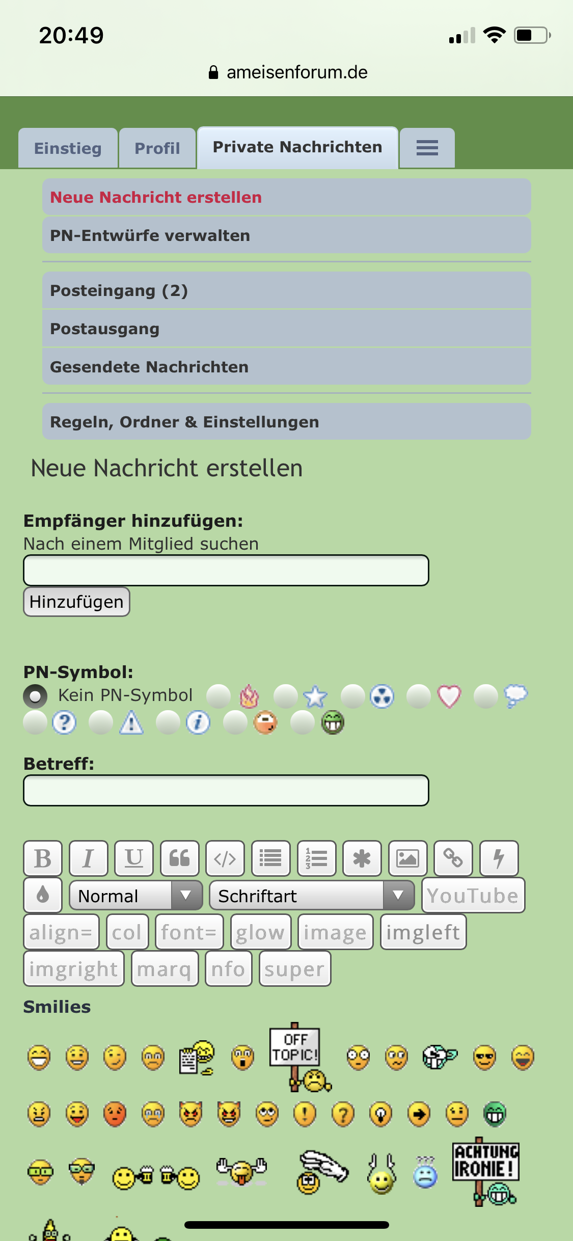 Manticor79 hat recht, so schlecht ist die Forumsoftware nicht, eigentlich komme ich gut damit zurecht, nur das mit den PNâs ist noch verbesserungswĂŒrdig!