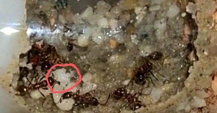 Das bringt die Ameisen zwar dazu, da ab und an reinzuschauen (vorgestern haben Sie ein Heuschrecken Schenkelchen da platziert) ansonsten sieht es aber nicht so aus, als ob sie einen RĂŒckzug in Betracht ziehen wĂŒrden.