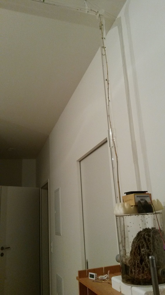 Diesmal mit hydrokugeln ohne sand. wie man sieht hab ich grad einen pc lĂŒfter auf dem pilzzylinder der die luft herssaugt, da zu viel wasser am Boden ist.