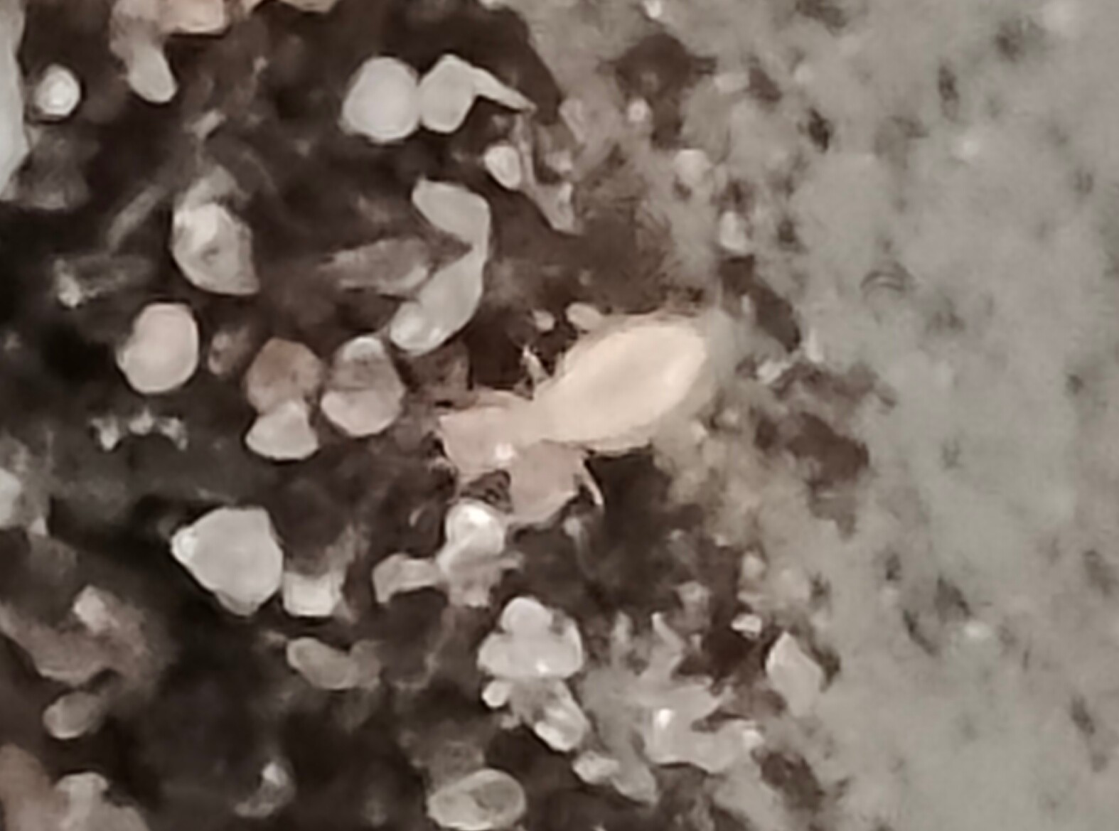 Das auf dem Bild wäre eine Staublaus - also ggfls ein ungefährlicher Futterreste-Verwerter.