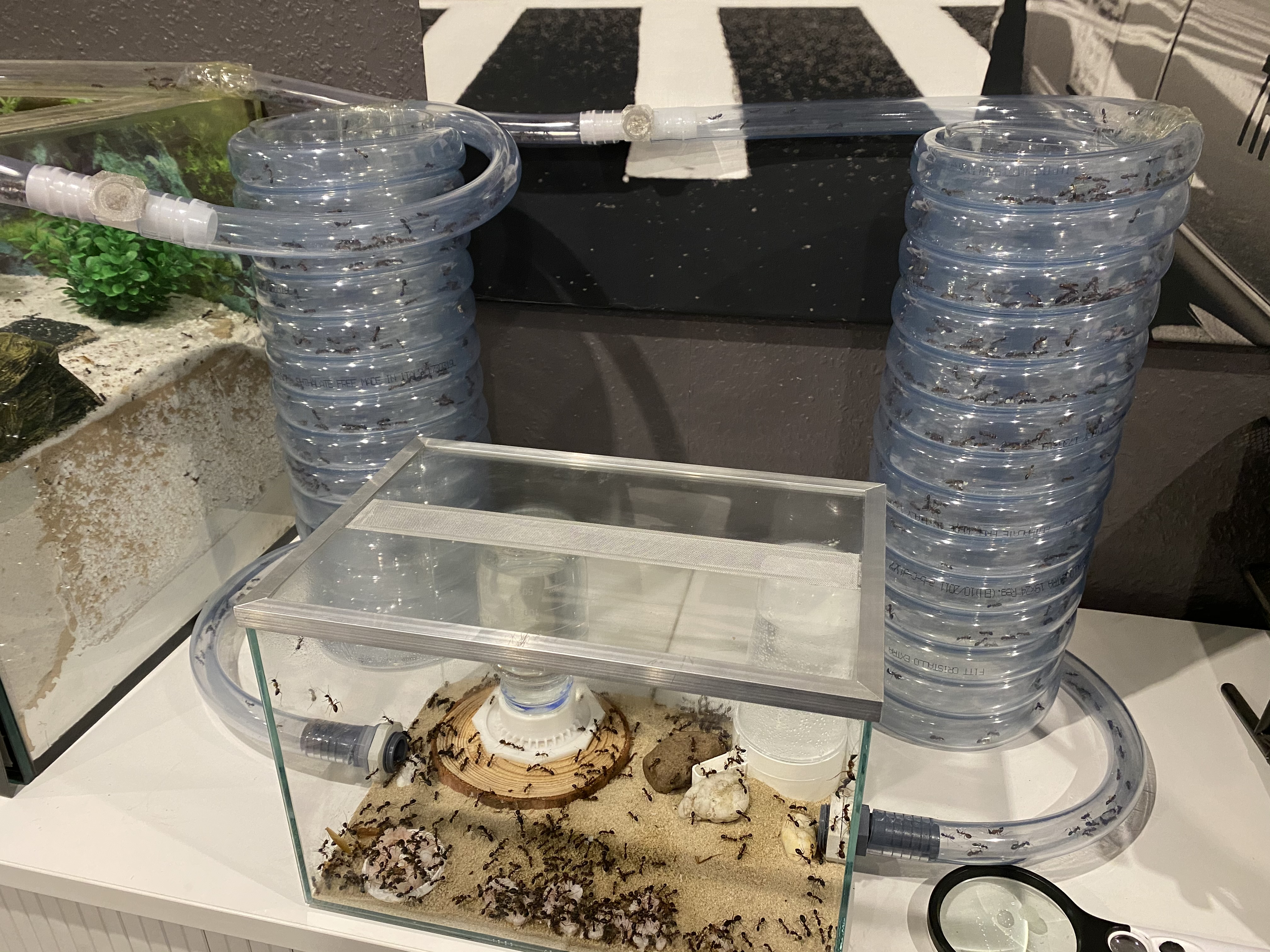20 ml FlĂŒssigkeit reichen fĂŒr eine kleinere Kolonie schon eine Weile aus (mit "mehreren Formicarien" meinst du eine Kolonie verteilt auf mehrere Becken und Nester?).