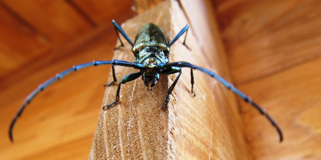 vergleiche mal mit Bildern vom Moschusbock (Aromia moschata). Wenn es sich, um diese Art handelt, könnten sich in der nähe Bestände von Weiden, Pappeln oder Erlen befinden, da sich die