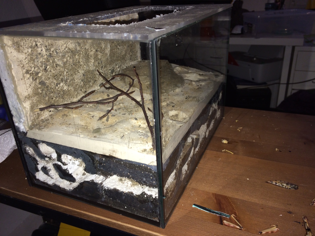 Für die nächste Saison habe ich Ihnen eine Arena (300x200x200) mit integriertem Nest gebastelt. Das Nest habe ich extra groß gestaltet, um evtl. eine Oliogynie herzustellen zu können. Ich habe als Alternative schon Pläne, zwei getrennte Gipsnestbereiche zu bauen und in der Mitte eine Arena zu gießen. Auf gut deutsch: ein Gipsblock. Der Gedanke war, zwei von einander getrennte Nester anzubieten und Ihnen zum Großteil ein Leben in Dunkelheit zu ermöglichen. Was haltet ihr davon?